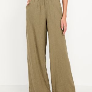 High-Waisted Linen-Blend Wide-Leg Pants: comfort elastic-drawstring waist, side-seam pockets, wide leg, vertical striped print, pull-on style, #766295