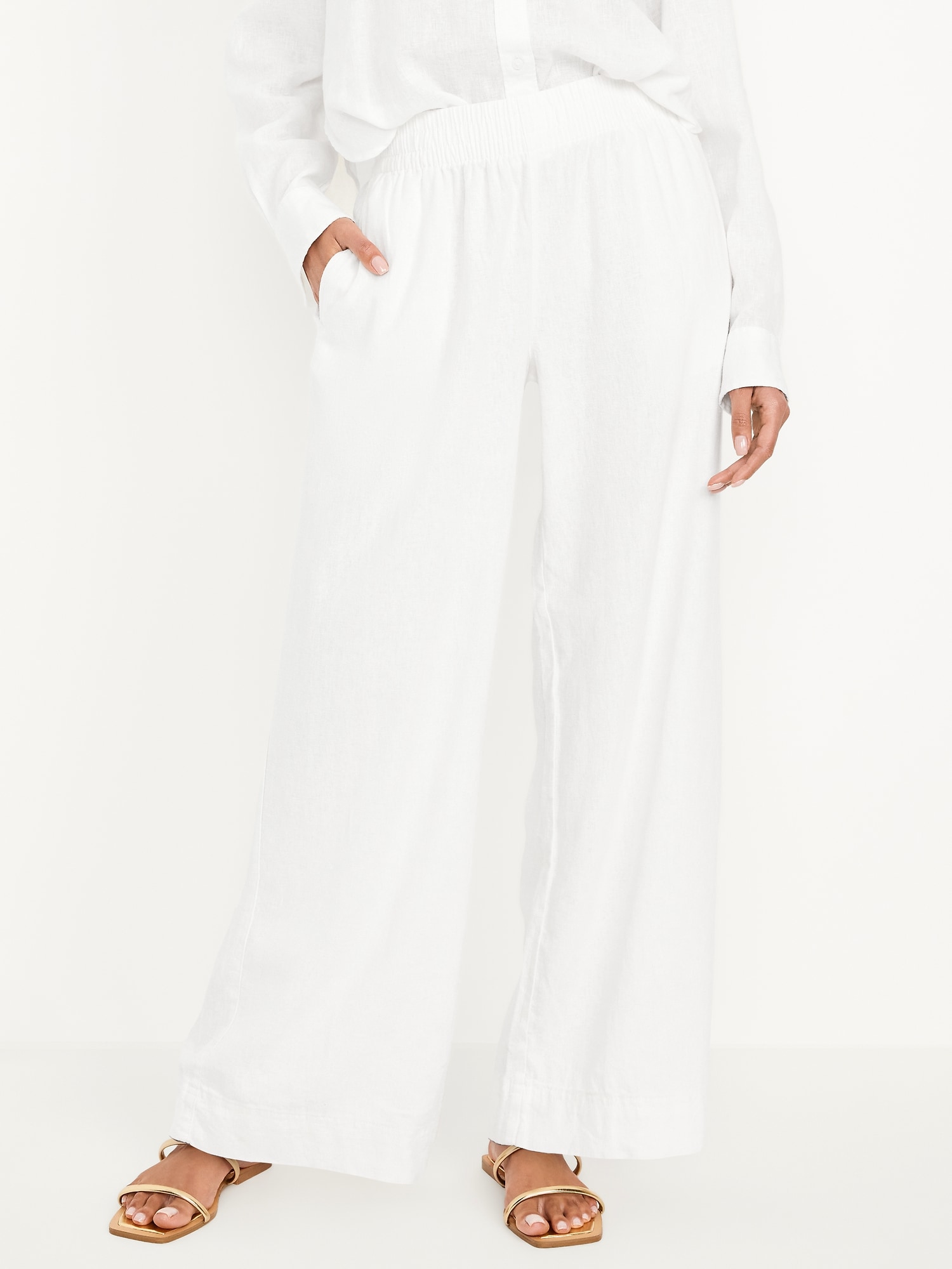 High-Waisted Linen-Blend Wide-Leg Pants: elastic-drawstring high waistband, on-seam hip pockets, super wide leg, easy pull-on style, online exclusive, #683345