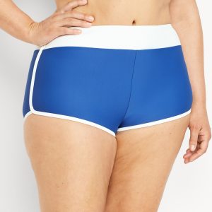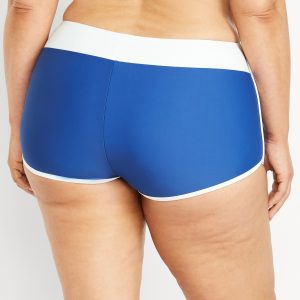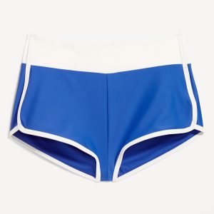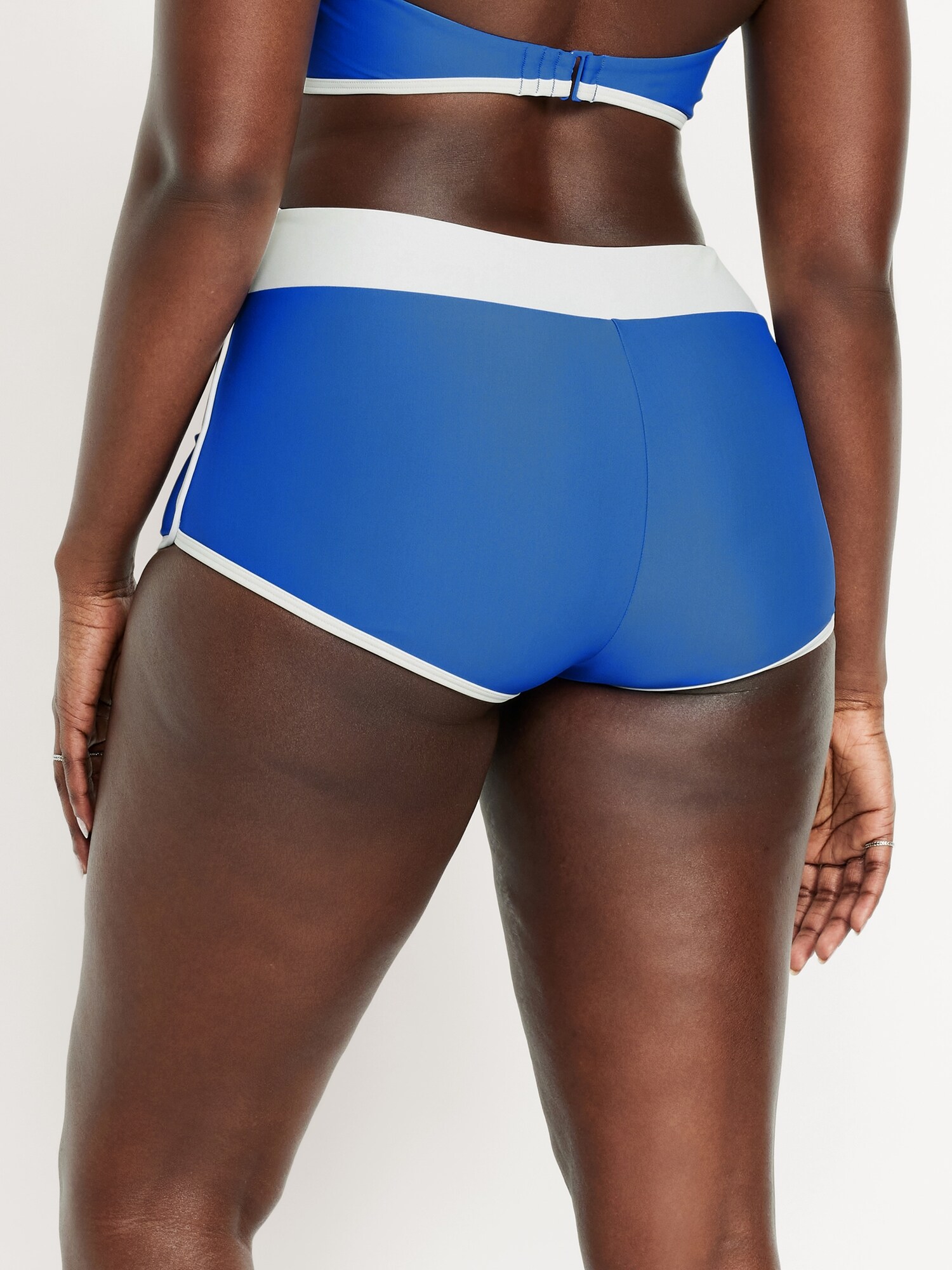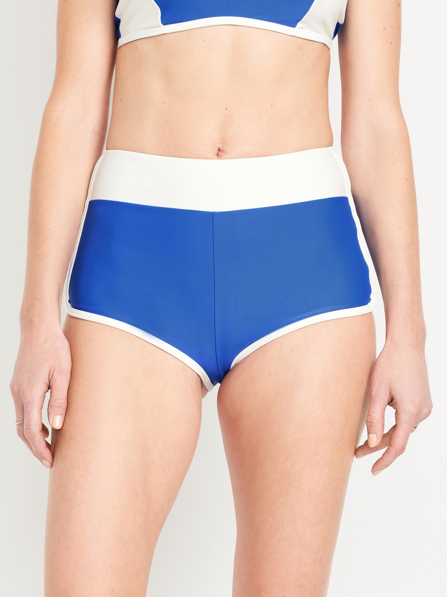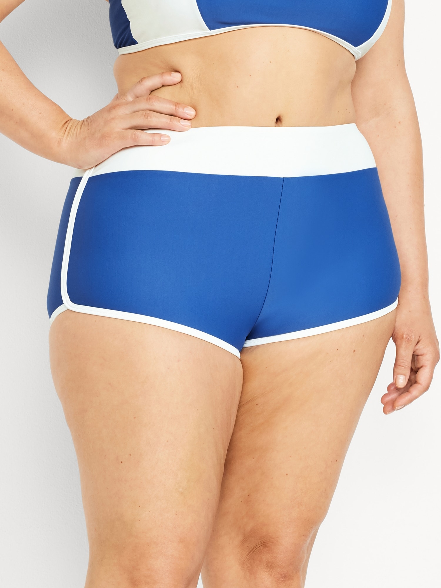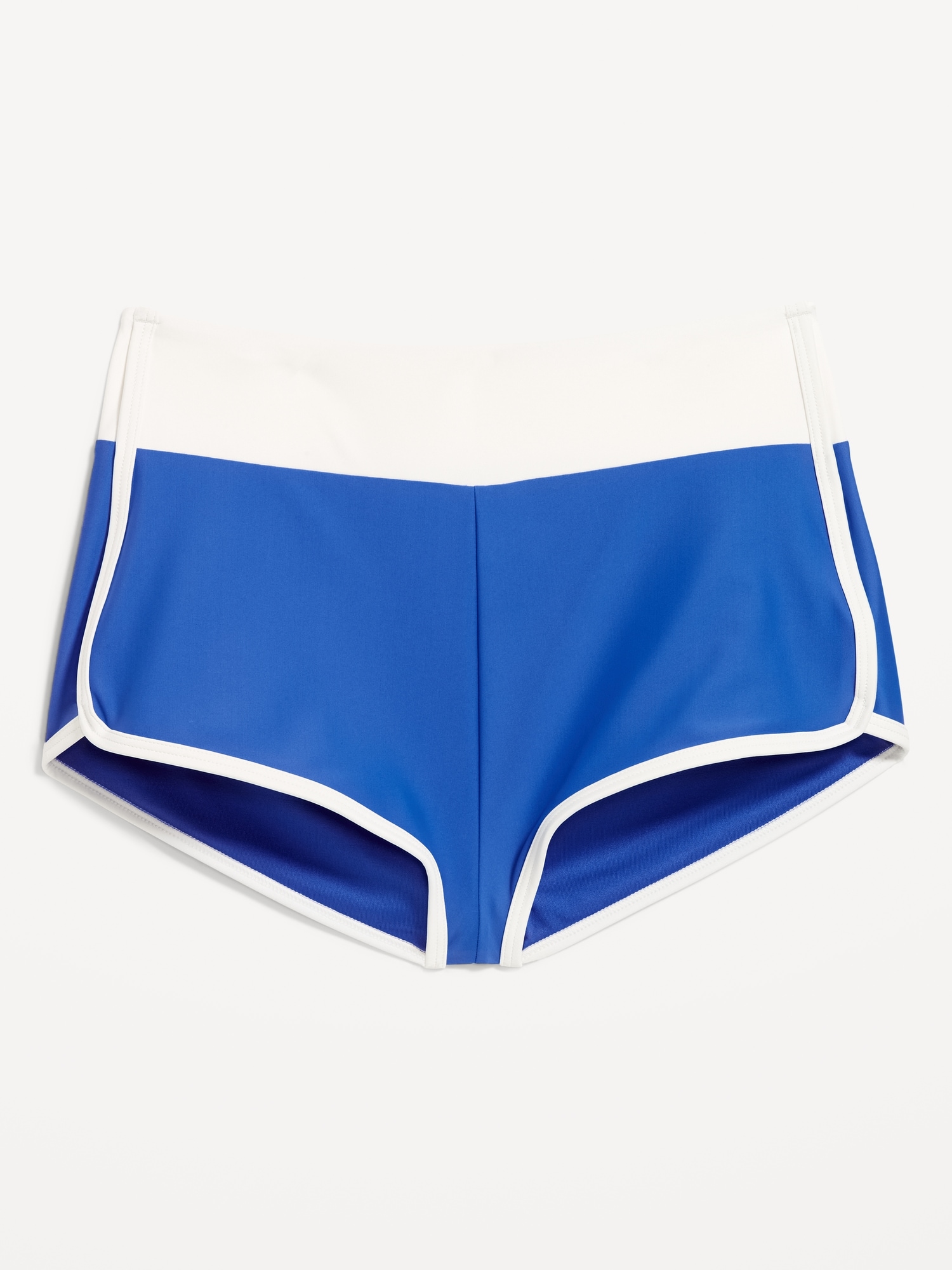 High-Waisted Matte Swim Shorts: high elastic waistband, dolphin hem, elastic leg openings, #747893