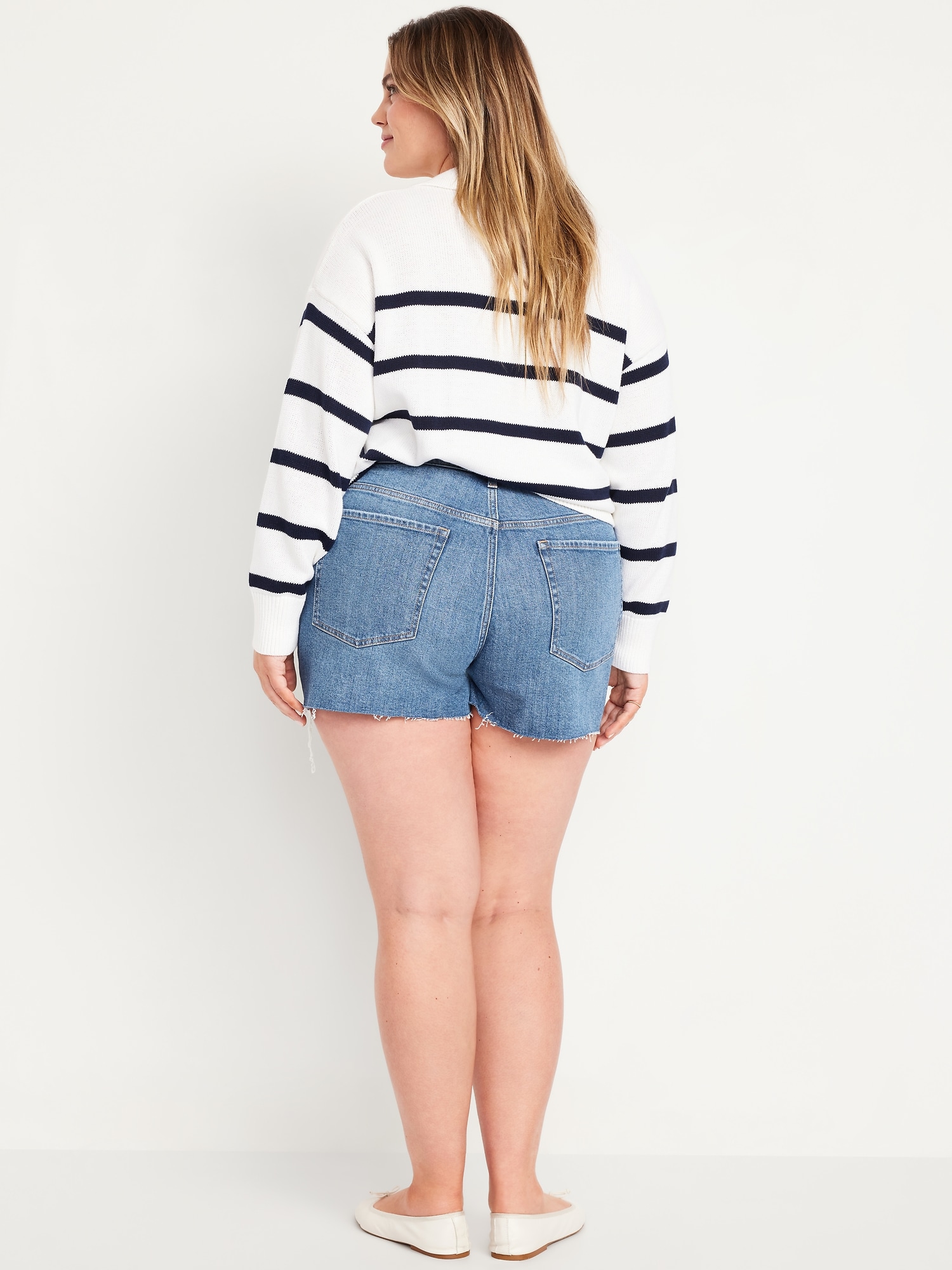 High-Waisted OG Jean Cut-Off Shorts — 3-inch inseam: button front, belt loops, zip front, front scoop pockets, back patch pockets, cutoff hem, #846719