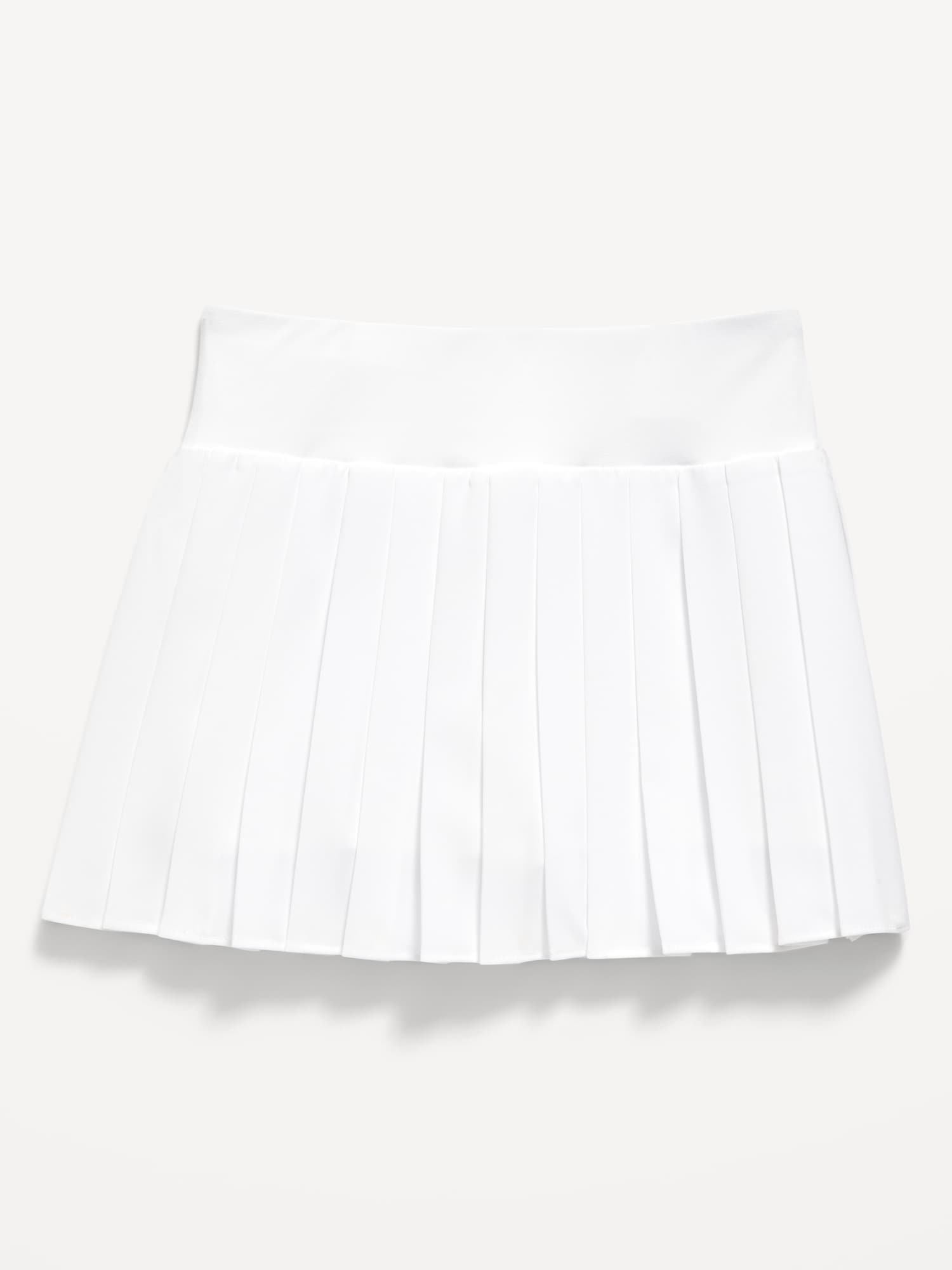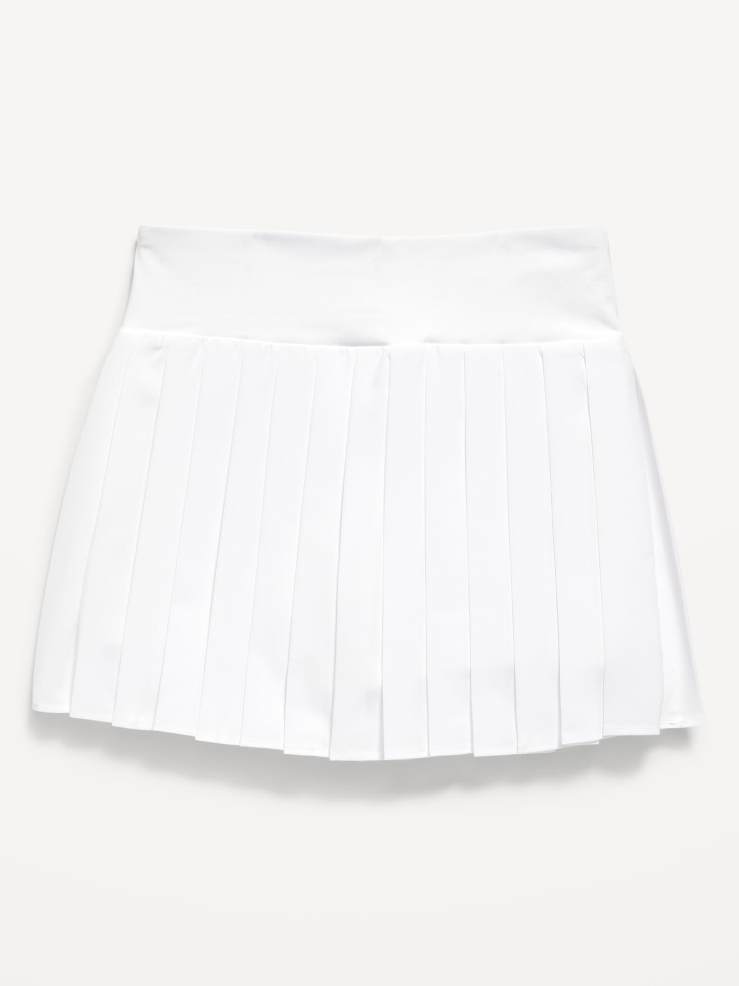 High-Waisted Pleated Performance Skort for Girls: built-in biker shorts, built-in shorts has stash pocket, elasticized waistband, flared pleated skirt, #865083