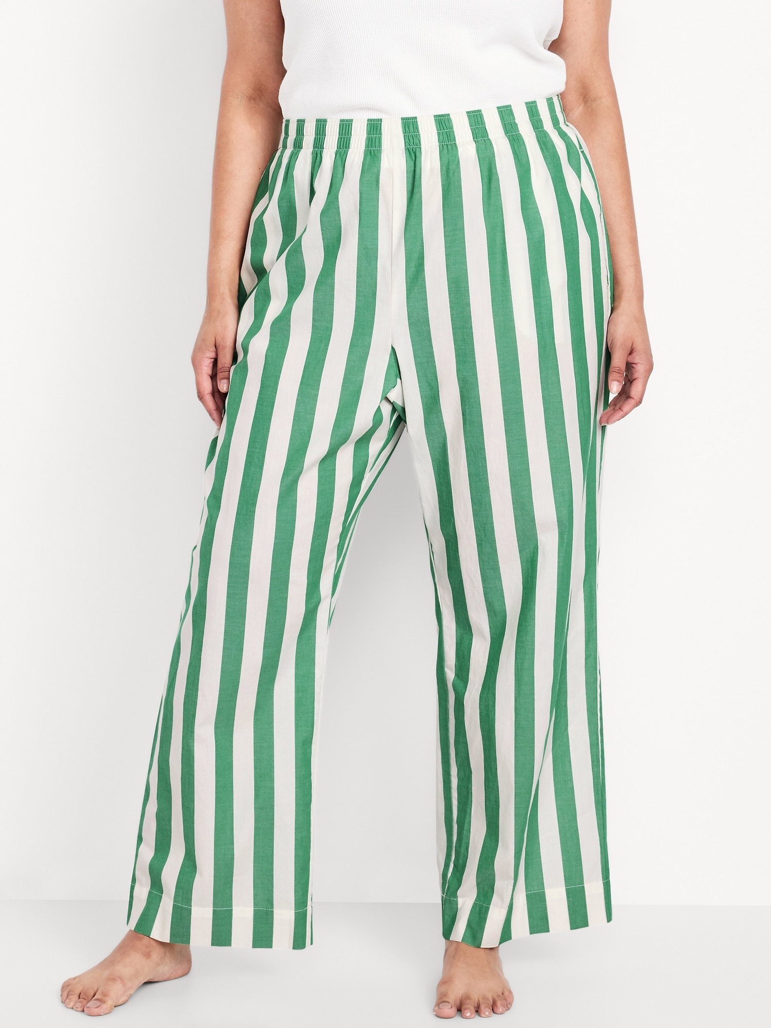 High-Waisted Poplin Pajama Pant: Crisp, breathable cotton that’s classic for a reason.elastic waist, three-button fly, prints match back to the fam, #889319