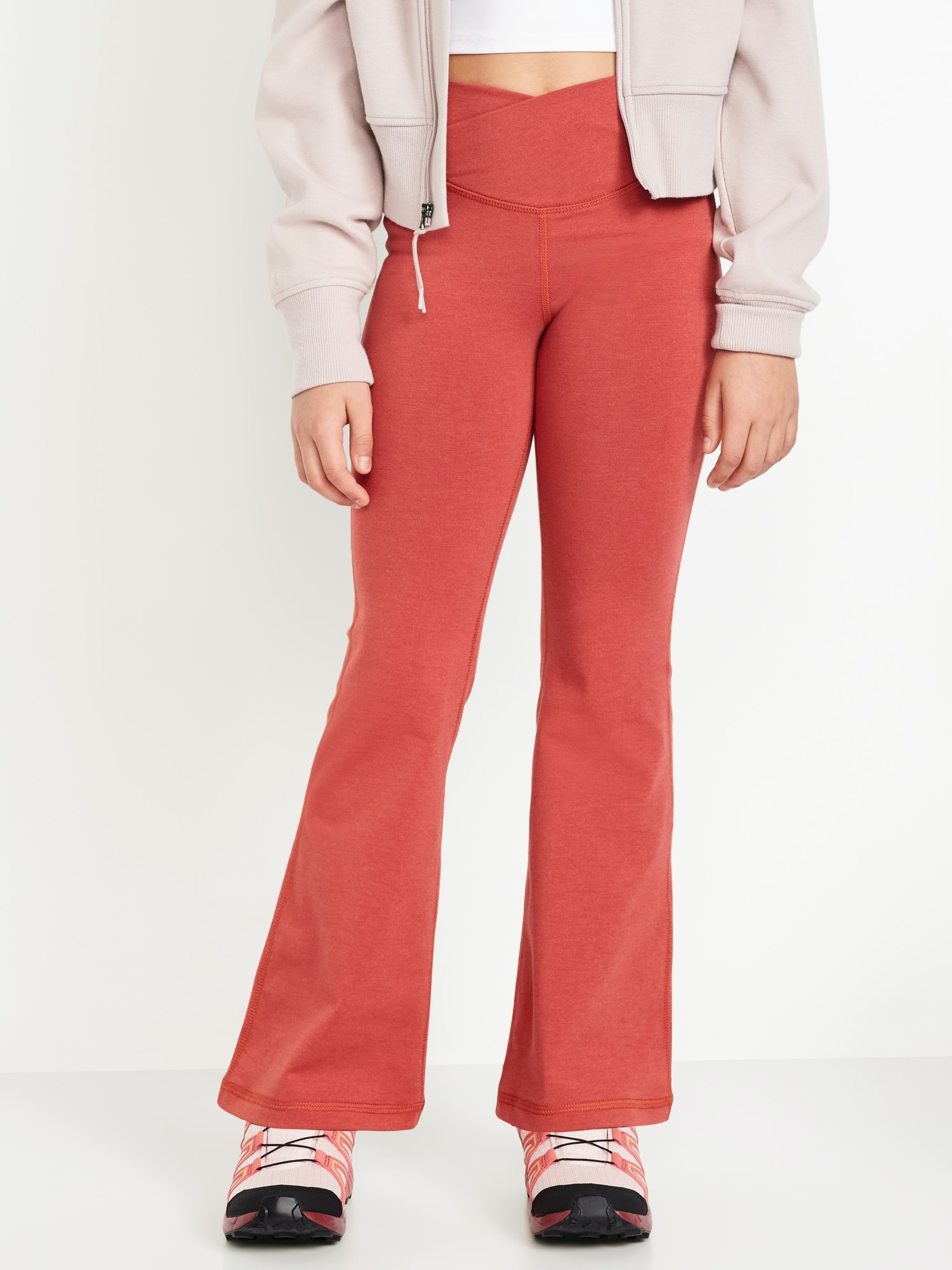 High-Waisted PowerChill Crossover Flared Leggings for Girls: elasticized crossover waistband, flared hem, #782504