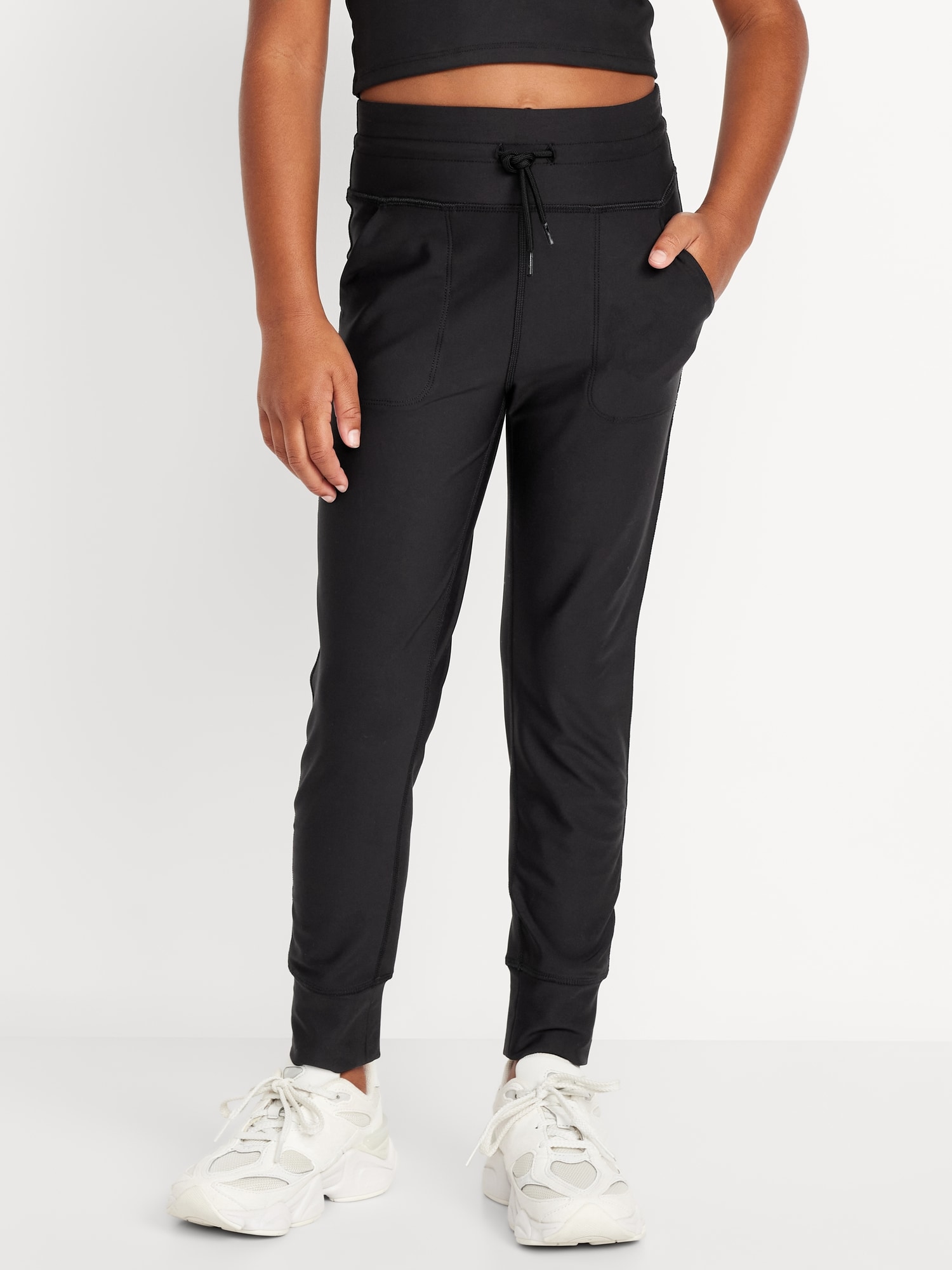 High-Waisted PowerSoft 7/8-Length Performance Leggings for Girls: elasticized waistband, high-rise, functional drawstring, diagonal pockets at front, banded leg cuffs, #762181