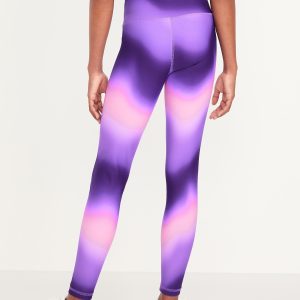 High-Waisted PowerSoft 7/8-Length Performance Leggings for Girls: elasticized waistband, high-rise, light-reflecting logo at back, ombre, #583781