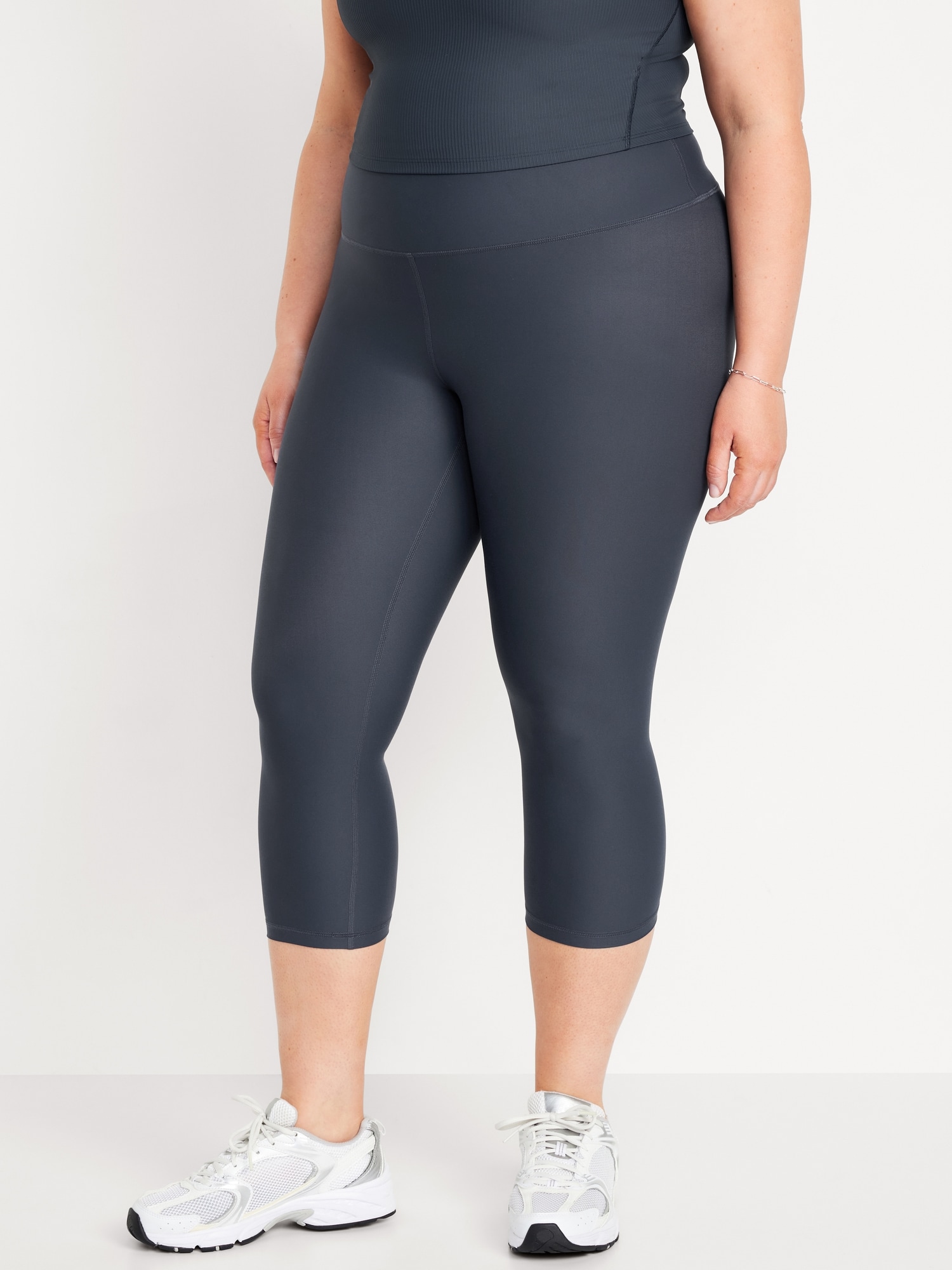 High-Waisted PowerSoft Crop Leggings: Featuring PowerSoft. Light compression meets a peachy-smooth, sweat-wicking fabric.elasticized waist, breathable, go-dry wicks moisture, #664727