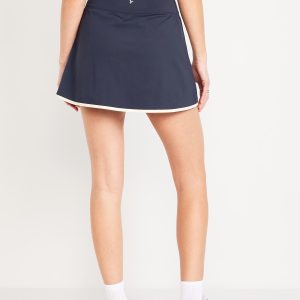 High-Waisted PowerSoft Faux-Wrap Skort: Featuring PowerSoft. Light compression meets a peachy-smooth, sweat-wicking fabric.pull-on waistband, faux-wrap front, built-in bike shorts, mini length, go-dry wicks moisture, breathable, #694169