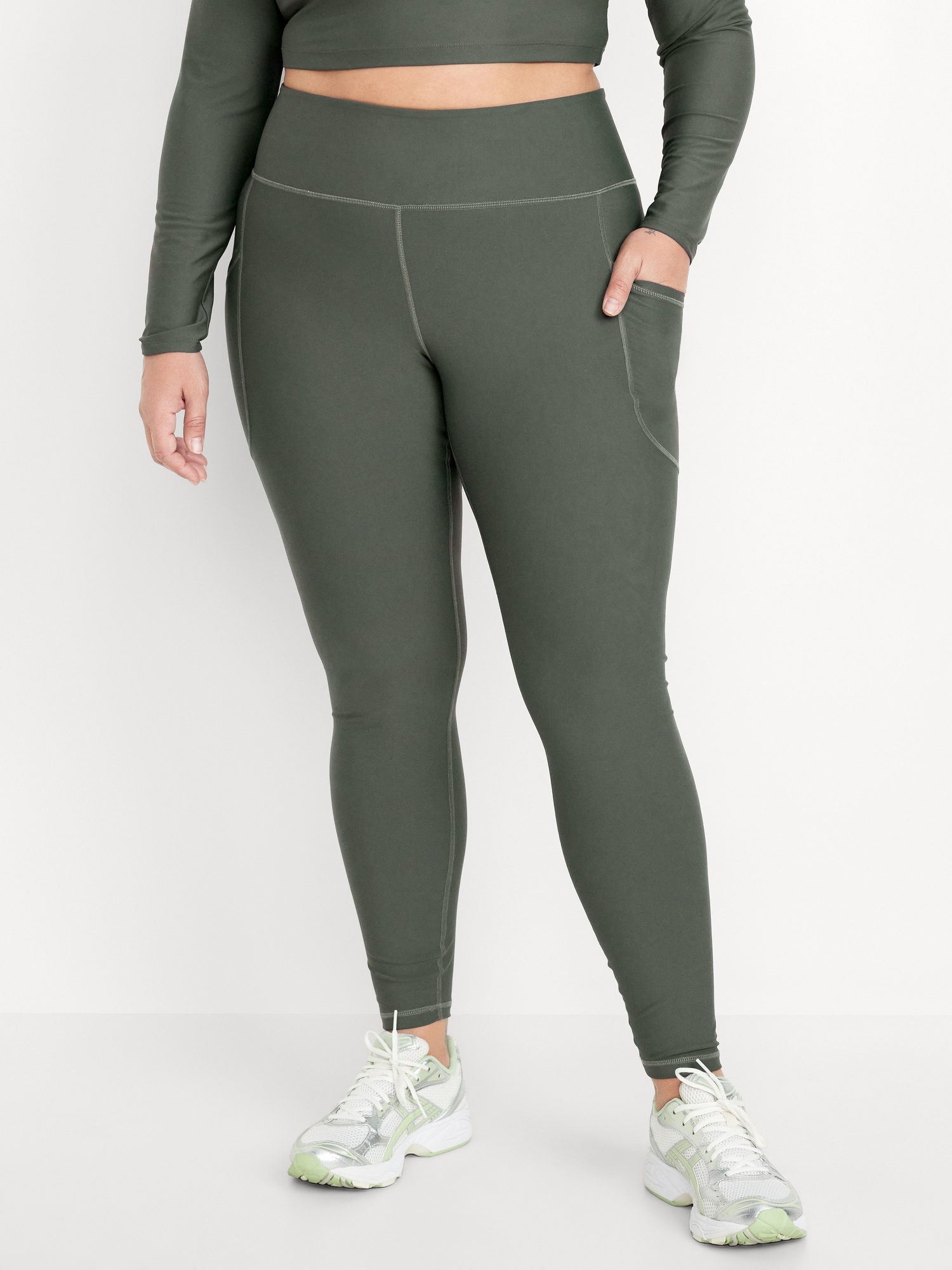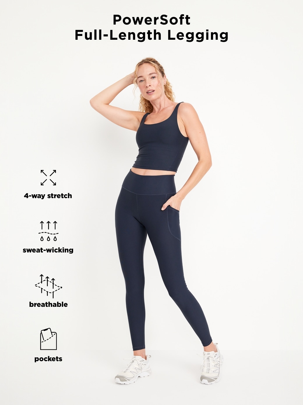 High-Waisted PowerSoft Full-Length Pocket Leggings: Featuring PowerSoft. Light compression meets a peachy-smooth, sweat-wicking fabric.elasticized waistband, side pockets, go-dry wicks moisture, #751138