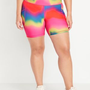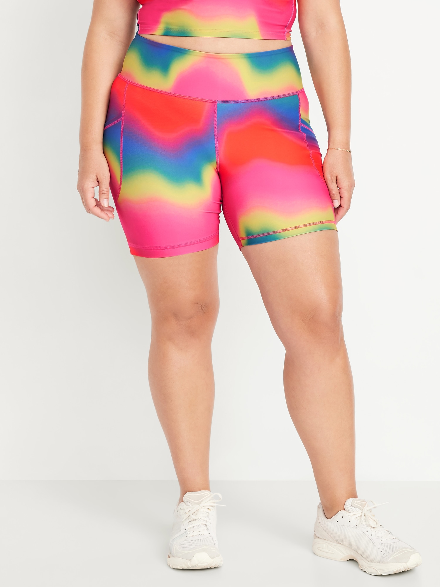 High-Waisted PowerSoft Pocket Biker Shorts — 6-inch inseam: Featuring PowerSoft. Light compression meets a peachy-smooth, sweat-wicking fabric.pull-on waist, side pocket fits your phone, go-dry wicks moisture, #662948