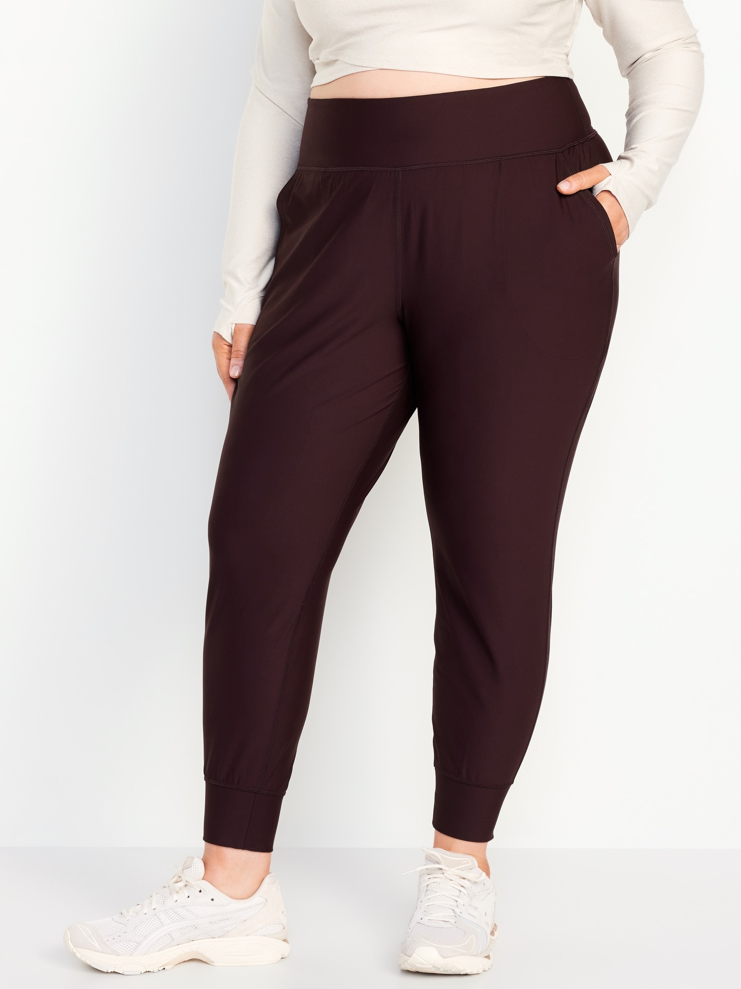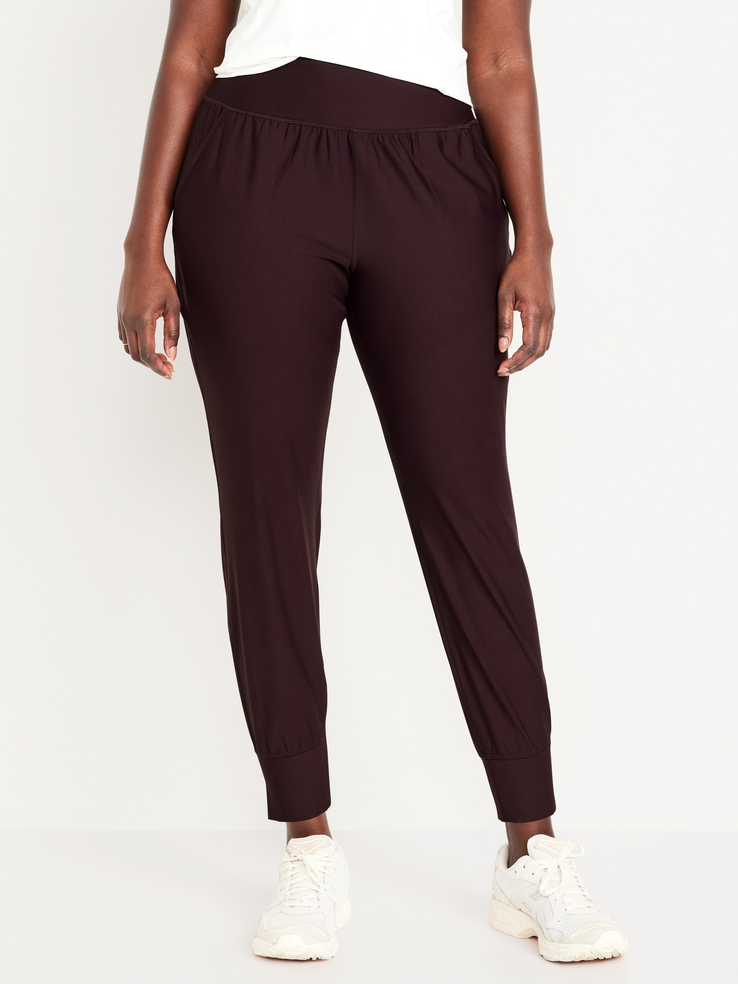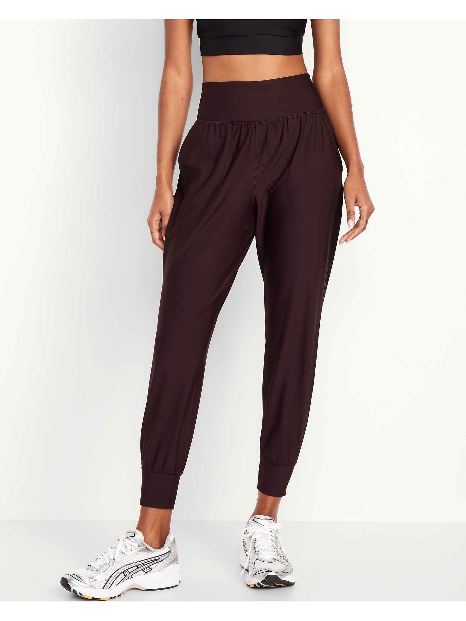 High-Waisted PowerSoft Pocket Joggers: Featuring PowerSoft. Light compression meets a peachy-smooth, sweat-wicking fabric.new waistband has more hold, less pinching, pockets fit your phone, banded cuffs, go-dry wicks moisture, breathable, available in maternity sizes, #479566