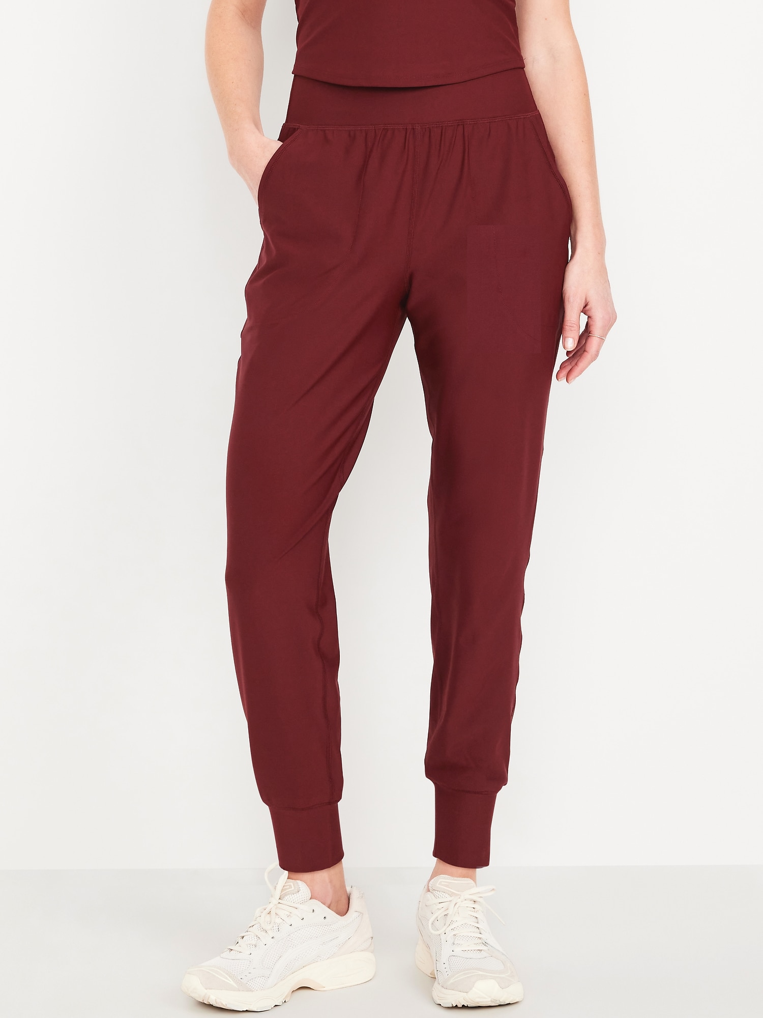 High-Waisted PowerSoft Pocket Joggers: Featuring PowerSoft. Light compression meets a peachy-smooth, sweat-wicking fabric.new waistband has more hold, less pinching, pockets fit your phone, banded cuffs, go-dry wicks moisture, breathable, available in maternity sizes, #479566