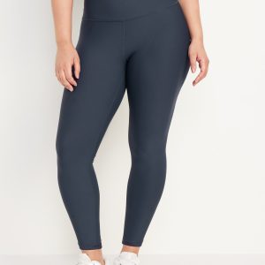 High-Waisted PowerSoft Rib Mix 7/8 Leggings: Featuring PowerSoft. Light compression meets a peachy-smooth, sweat-wicking fabric.ribbed side panels, contrasting piping, go-dry wicks moisture, #749127