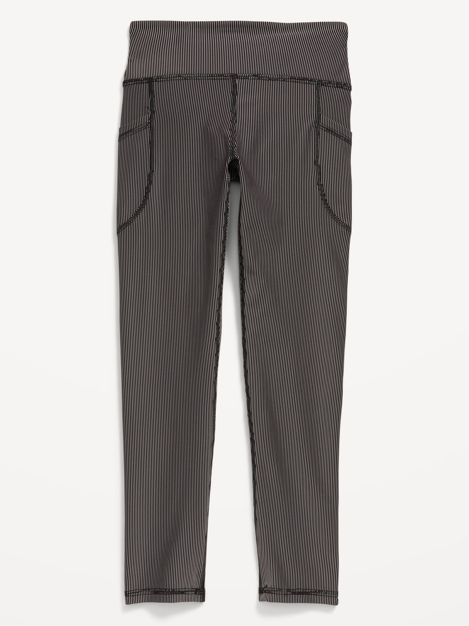 High-Waisted PowerSoft Ribbed Performance 7/8 Leggings for Girls: elasticized waistband, high-rise, light-reflecting logo at back, side pockets, #762169