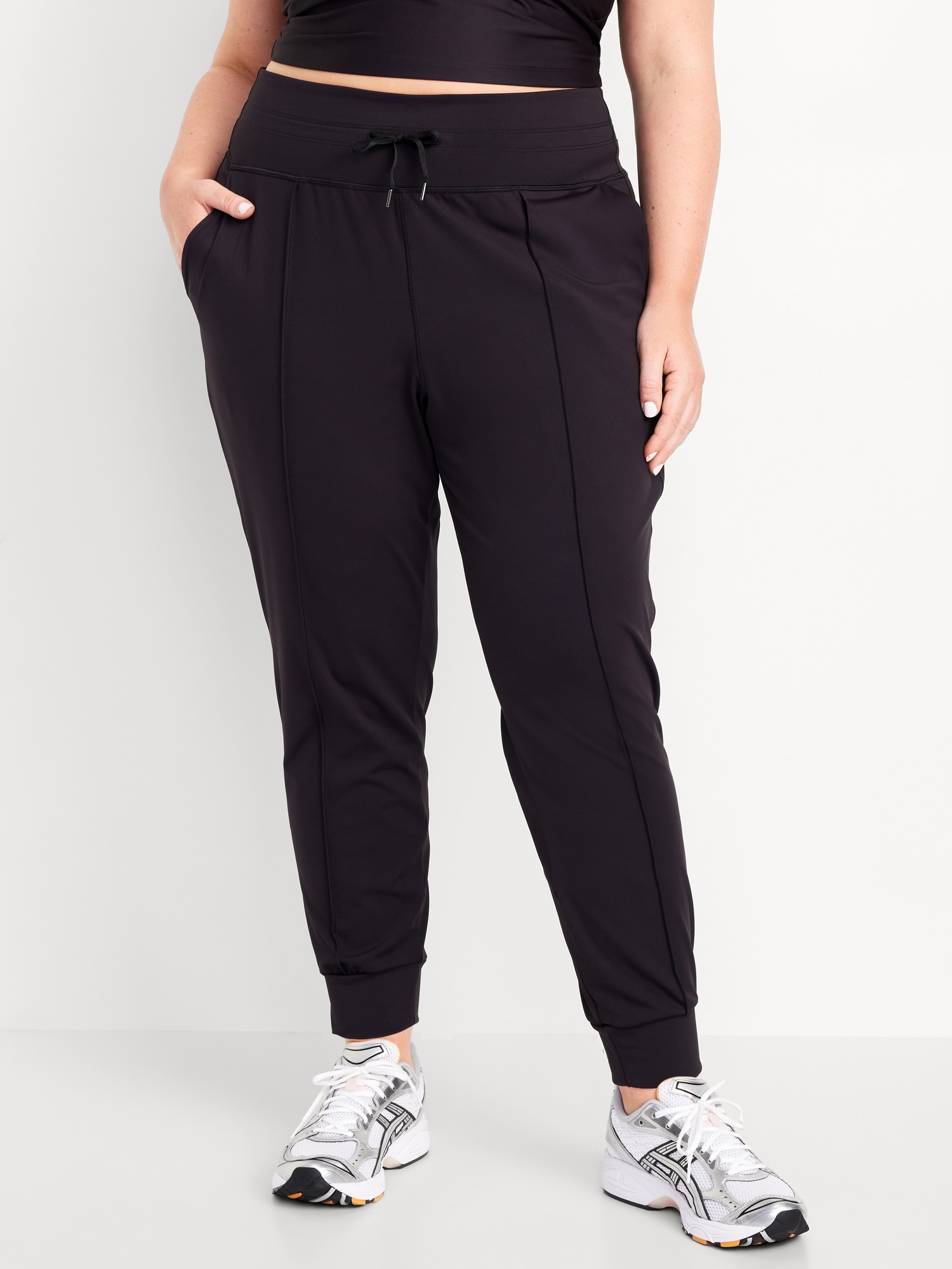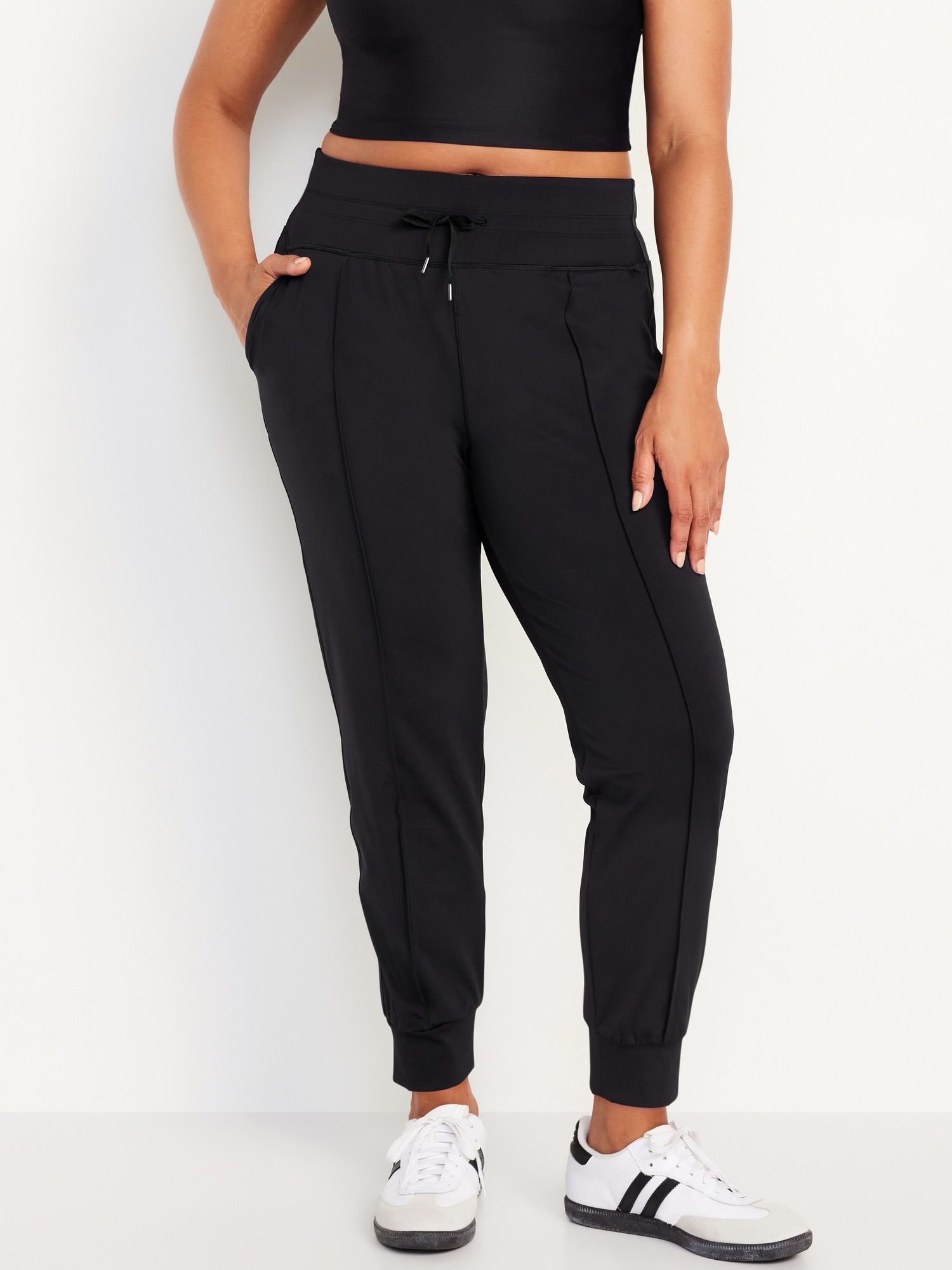 High-Waisted PowerSoft Seamed Joggers: Featuring PowerSoft. Light compression meets a peachy-smooth, sweat-wicking fabric.drawstring waist, hip pockets, seamed front leg, go-dry wicks moisture, #484601
