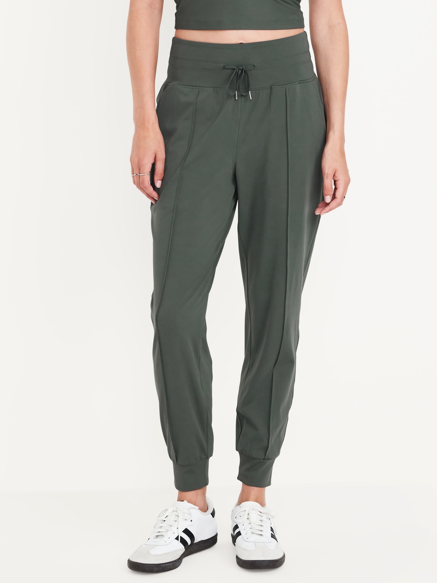 High-Waisted PowerSoft Seamed Joggers: Featuring PowerSoft. Light compression meets a peachy-smooth, sweat-wicking fabric.drawstring waist, hip pockets, seamed front leg, go-dry wicks moisture, #484601