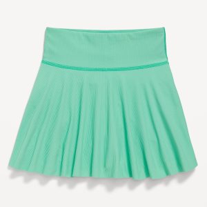 High-Waisted PowerSoft Skort for Girls: high-rise, elasticized waistband, reflective logo in back, mini-length skirt, built-in biker shorts, side pocket on shorts, easy pull-on style, #831549