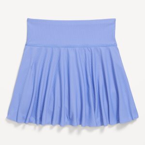High-Waisted PowerSoft Skort for Girls: high-rise, elasticized waistband, reflective logo in back, mini-length skirt, built-in biker shorts, side pocket on shorts, easy pull-on style, #831549