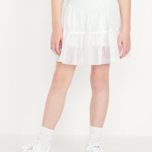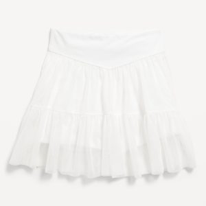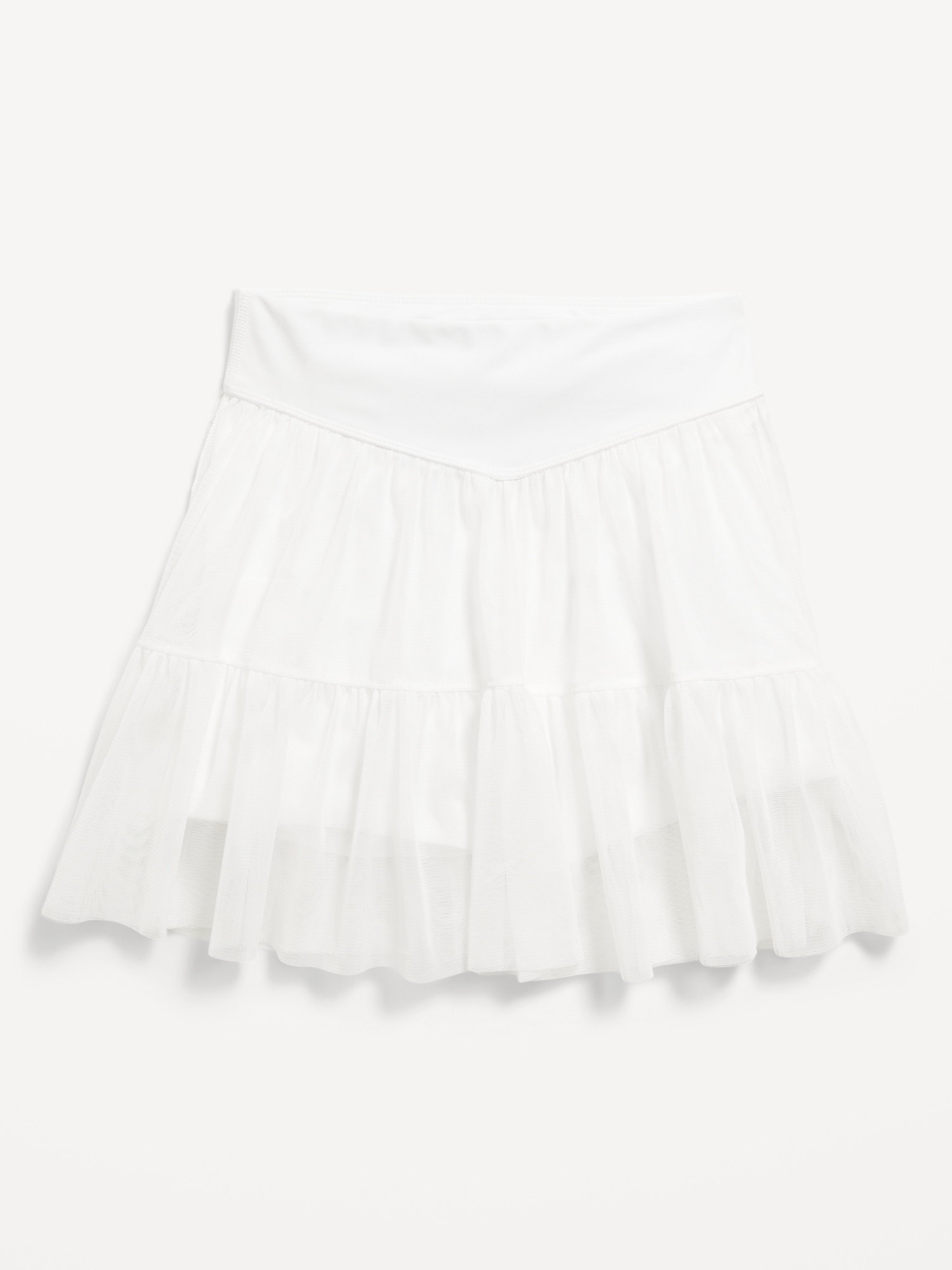 High-Waisted PowerSoft Tutu Skort for Girls: built-in biker shorts, high-rise, elasticized waistband, reflective logo at back, mini-length tutu skirt, lightweight tulle mesh layer, easy pull-on style, #762164