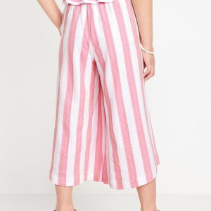 High-Waisted Pucker Wide-Leg Pants for Girls: ruffle elastic waistband, on-seam pockets, curved leg, wide contrasting stripes, #767120