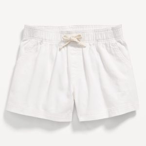 High-Waisted Pull-On Twill Shorts for Girls: high rise, elasticized waistband, functional drawstring, diagonal side pockets, all-over print, #767090