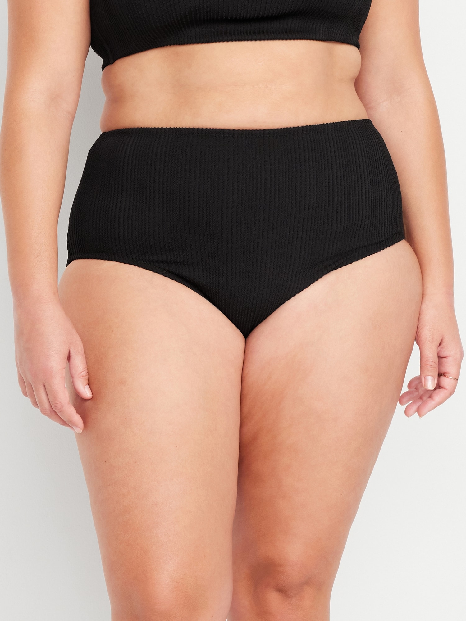 High-Waisted Ribbed Bikini Swim Bottoms: elasticized waist, elasticized leg openings, prints vary, #660456