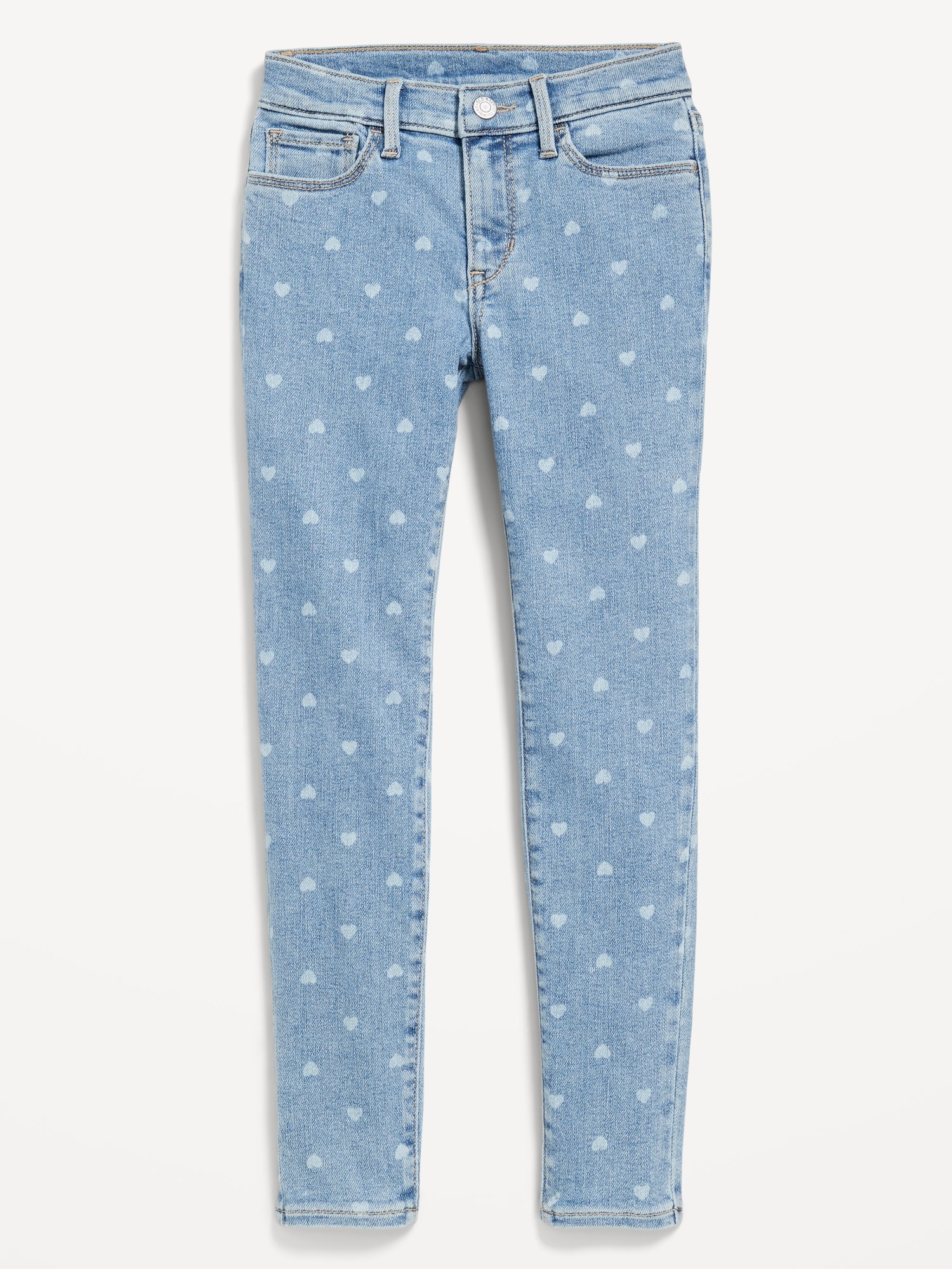 High-Waisted Rockstar 360° Stretch Jeggings for Girls: The it fits she really, really wants.interior adjustable waistband, snap-button closure in sizes 5-8, regular button closure in sizes 10-20, zip fly, scoop pockets and coin pocket at front, patch pockets at back, #876134