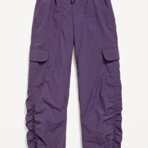 High-Waisted Side Ruched Cargo Parachute Joggers for Girls