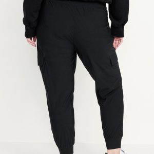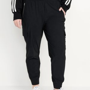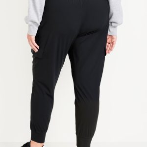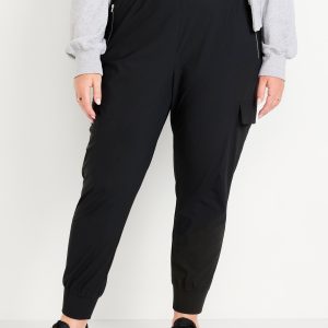 High-Waisted SleekTech Cargo Joggers: Featuring SleekTech. Polished and lightweight, with serious stretch.elastic waist, zippered hip pockets, flap-cargo pockets at thigh, go-dry wicks moisture, breathable, pull-on style, #569700