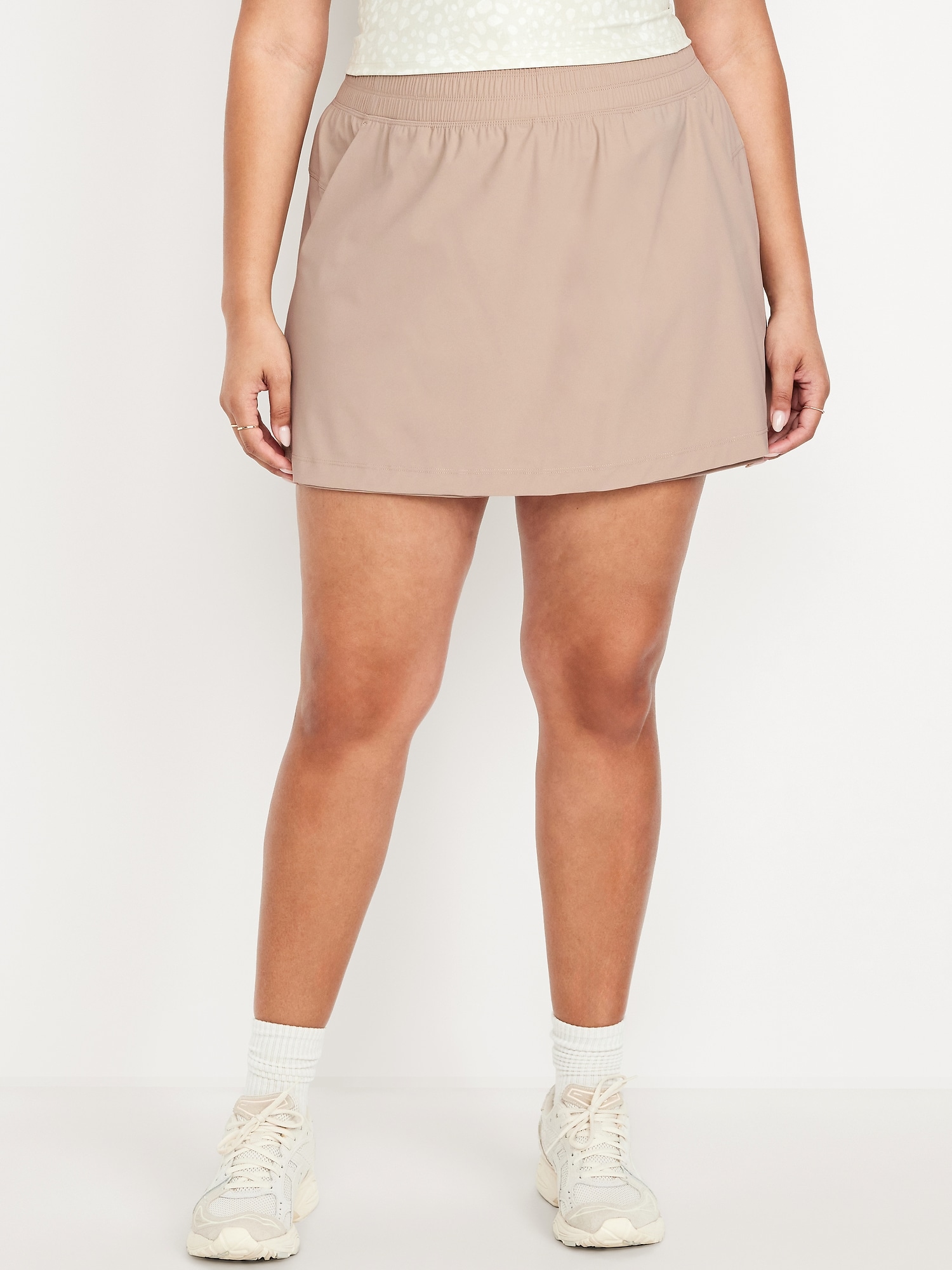 High-Waisted SleekTech Skort: Featuring SleekTech. Polished and lightweight, with serious stretch.elastic waist, diagonal front pockets, go-dry wicks moisture, breathable, #694168