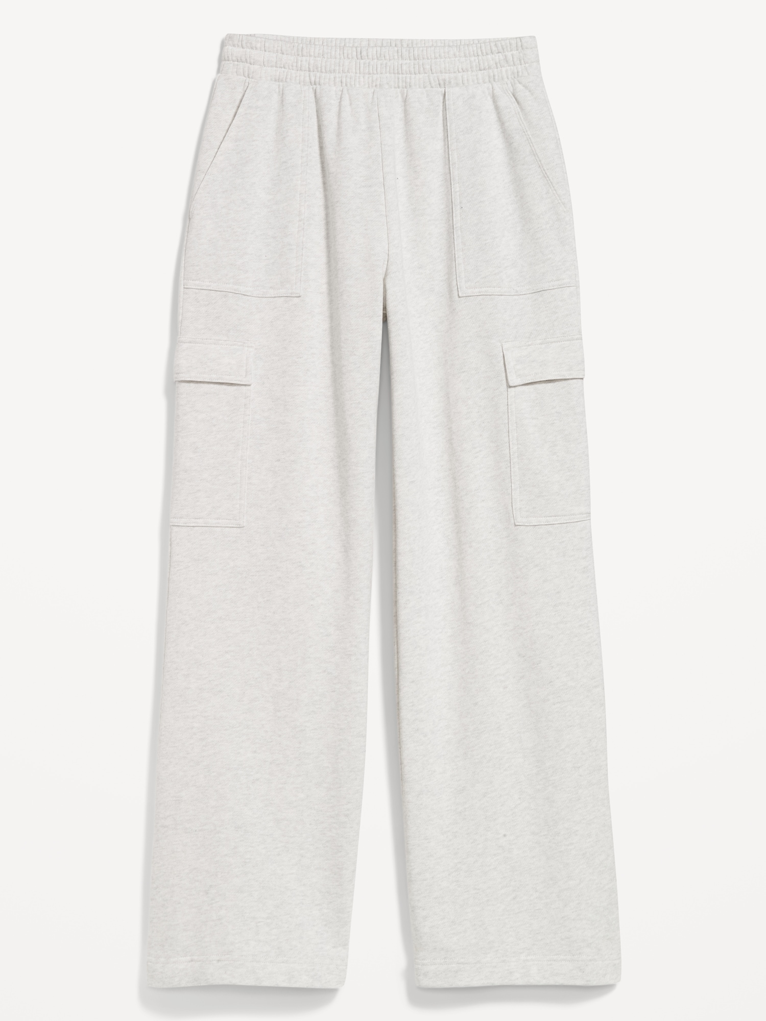 High-Waisted SoComfy Cargo Wide-Leg Sweatpants: The perfect-weight, never-taking-this-off fleece.high elastic waistband, front pockets, flap-cargo pockets at thigh, wide leg, pull-on style, #764226