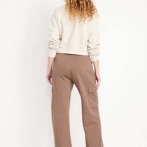 High-Waisted SoComfy Cargo Wide-Leg Sweatpants: The perfect-weight, never-taking-this-off fleece.high elastic waistband, front pockets, flap-cargo pockets at thigh, wide leg, pull-on style, #764226