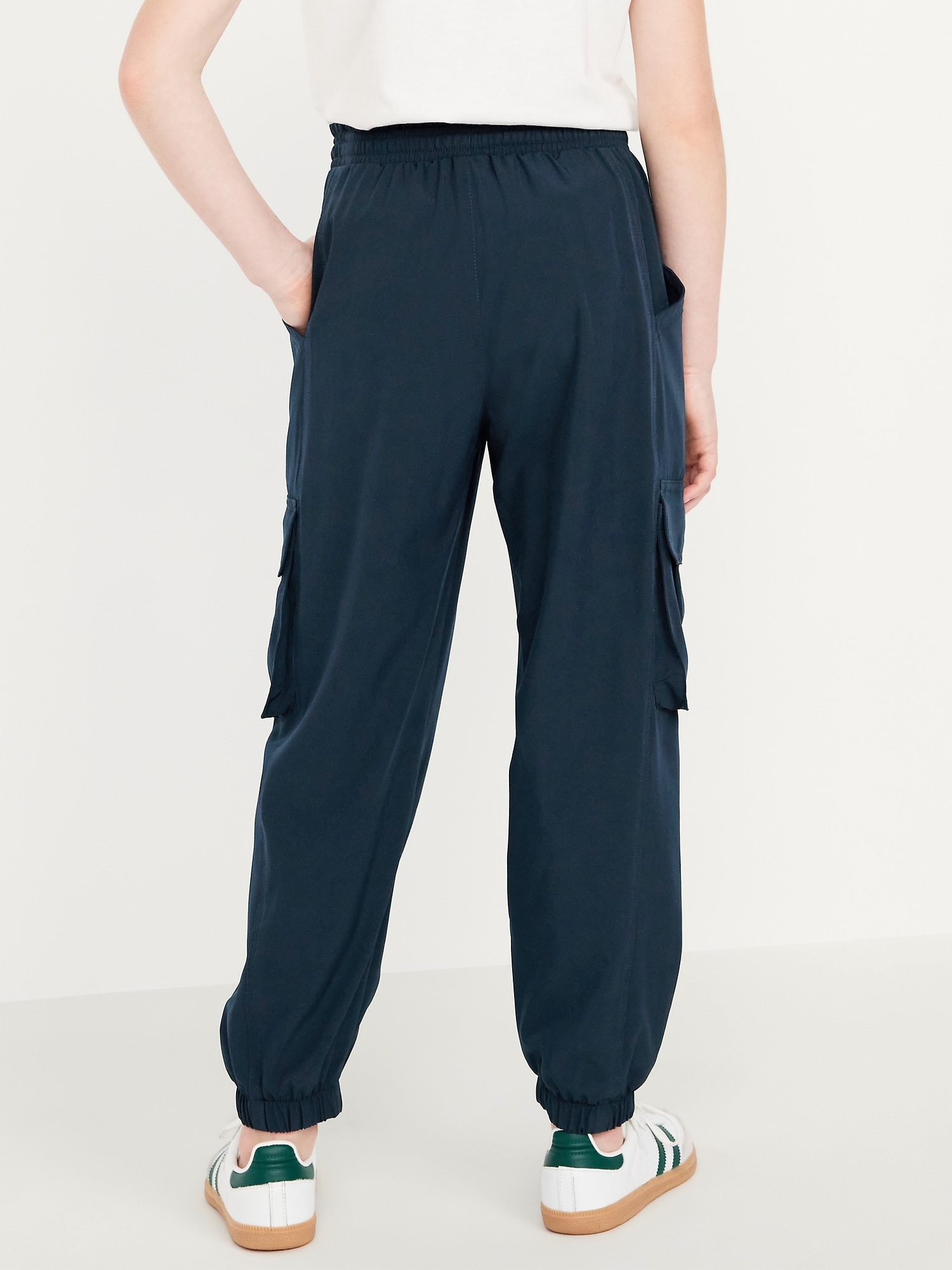 High-Waisted StretchTech Performance Joggers for Girls: high rise, elasticized waistband, functional drawstring, diagonal utility pockets, cargo flap pockets at each leg, cinched leg cuffs, #766991