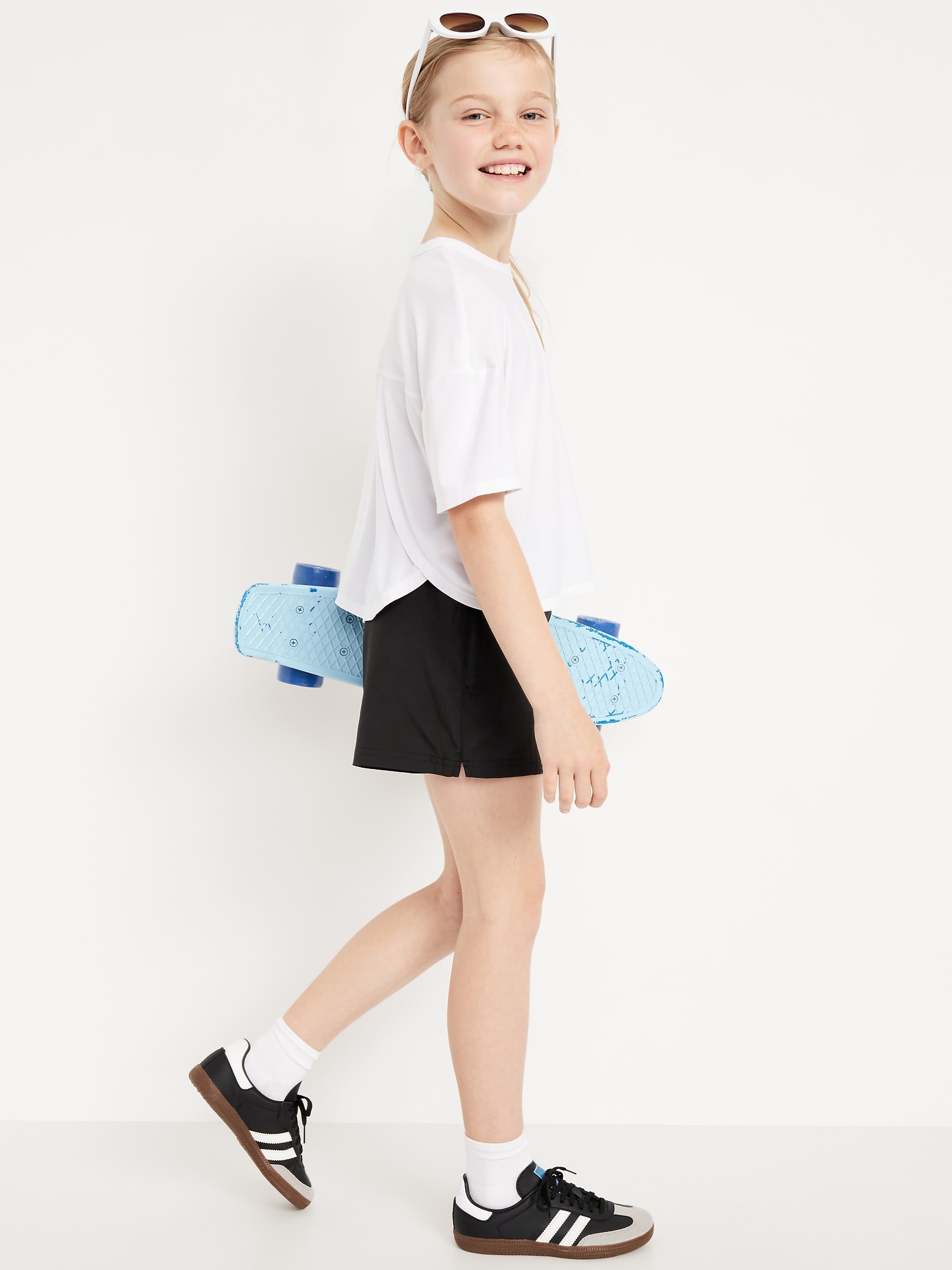 High-Waisted StretchTech Performance Shorts for Girls: high rise, elasticized waistband, zippered welt pockets, front seams, #762166