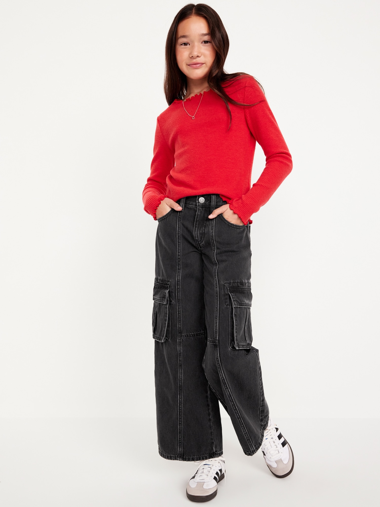 High-Waisted Super Baggy Wide-Leg Cargo Jeans for Girls