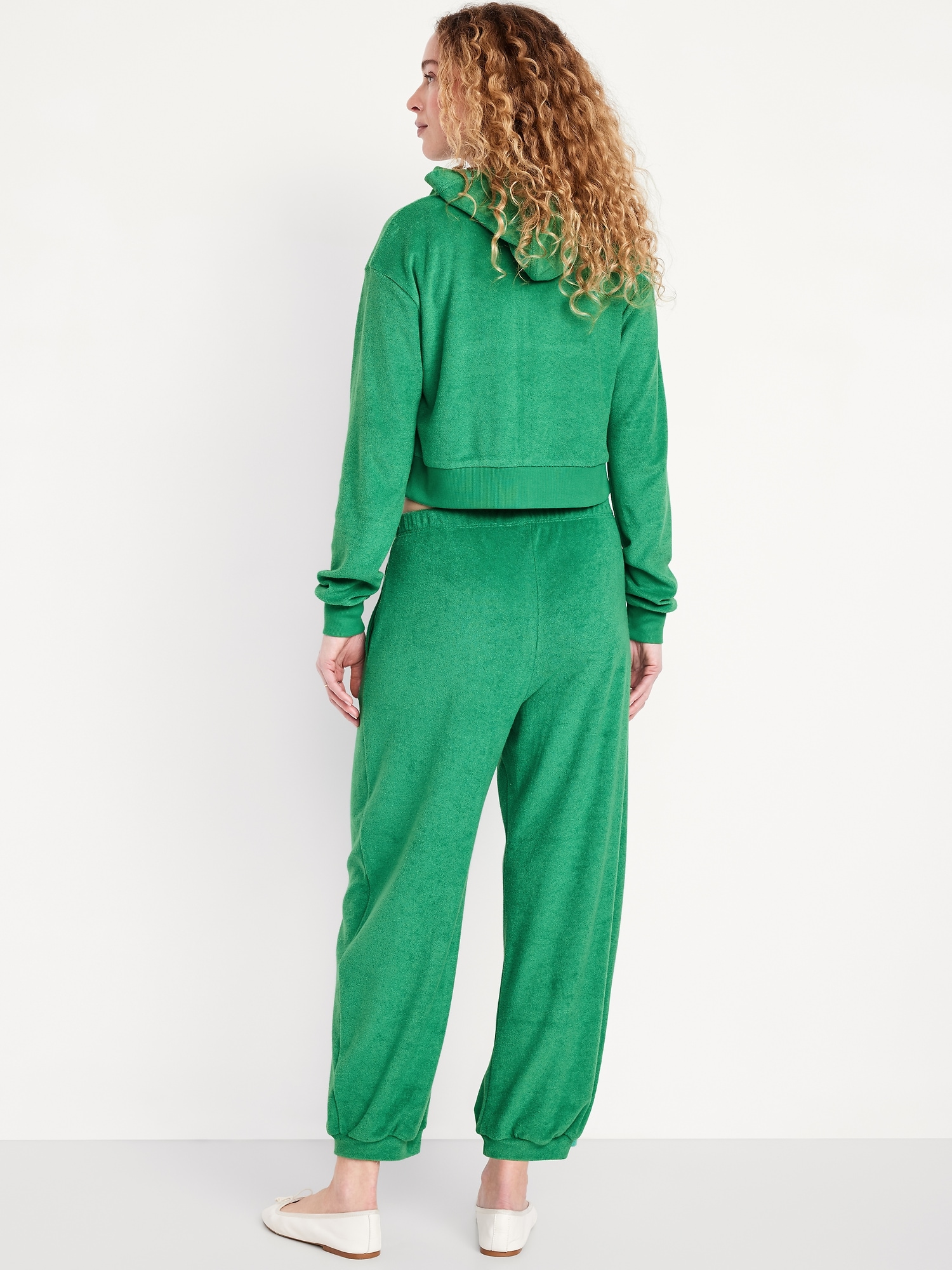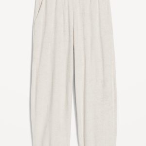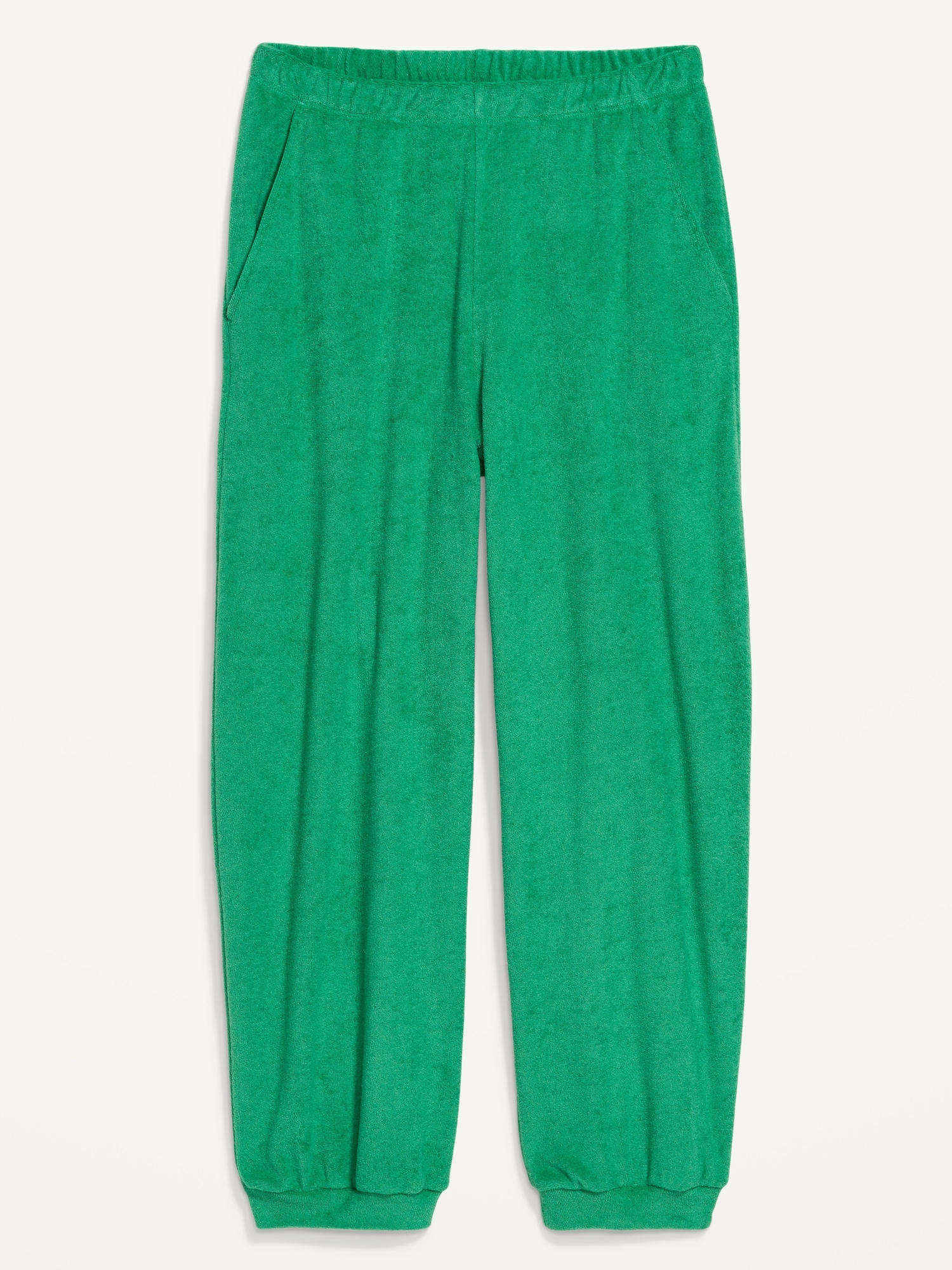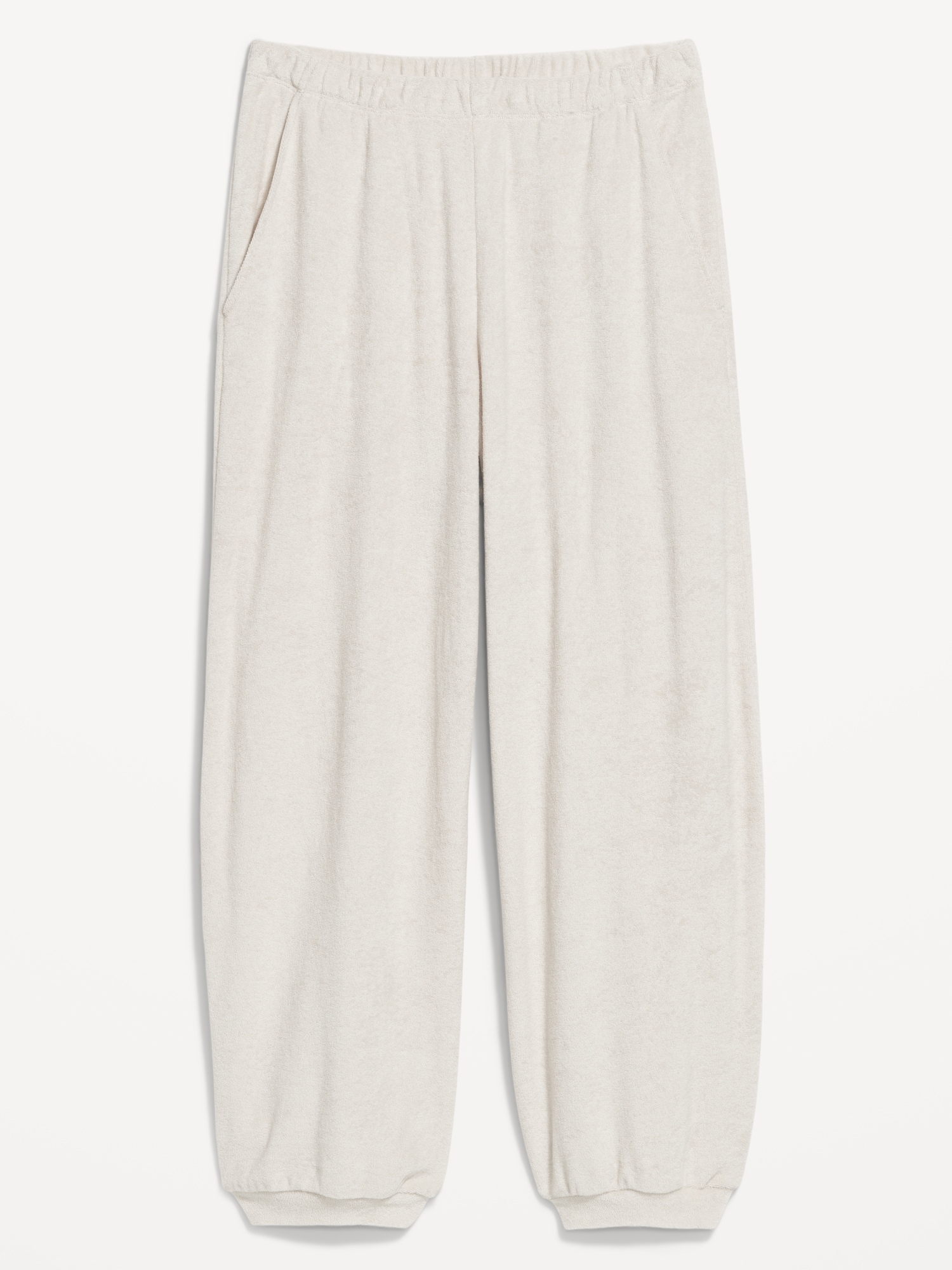 High-Waisted Towel Terry Barrel Ankle Pants: elastic waistband, on-seam pockets, cuffed barrel leg, #749658