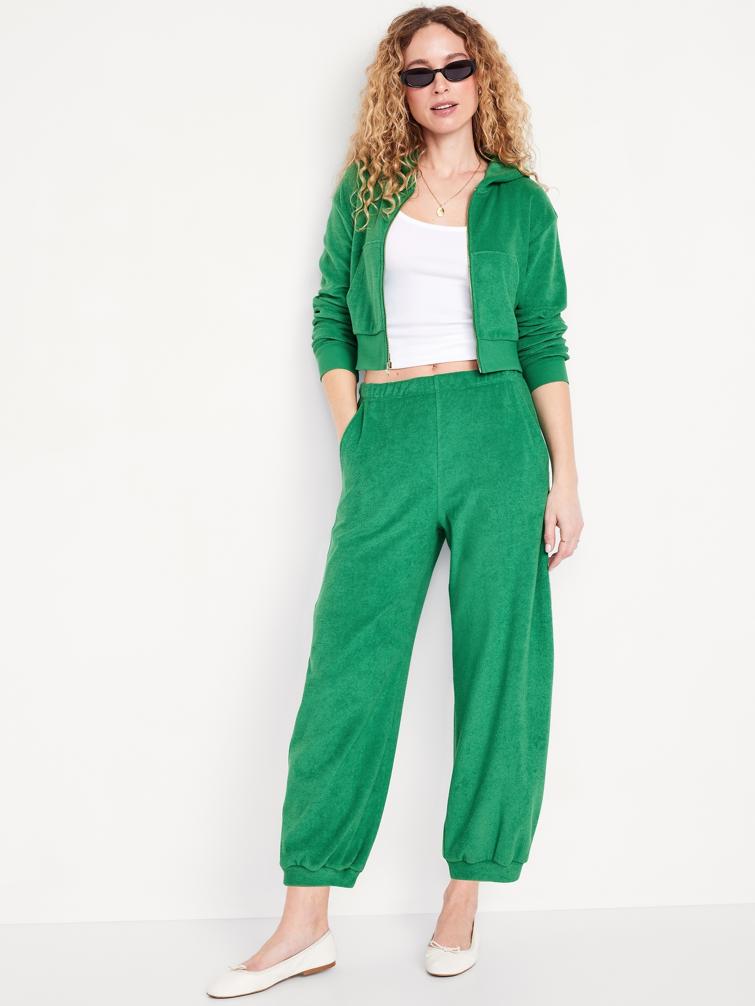 High-Waisted Towel Terry Barrel Ankle Pants