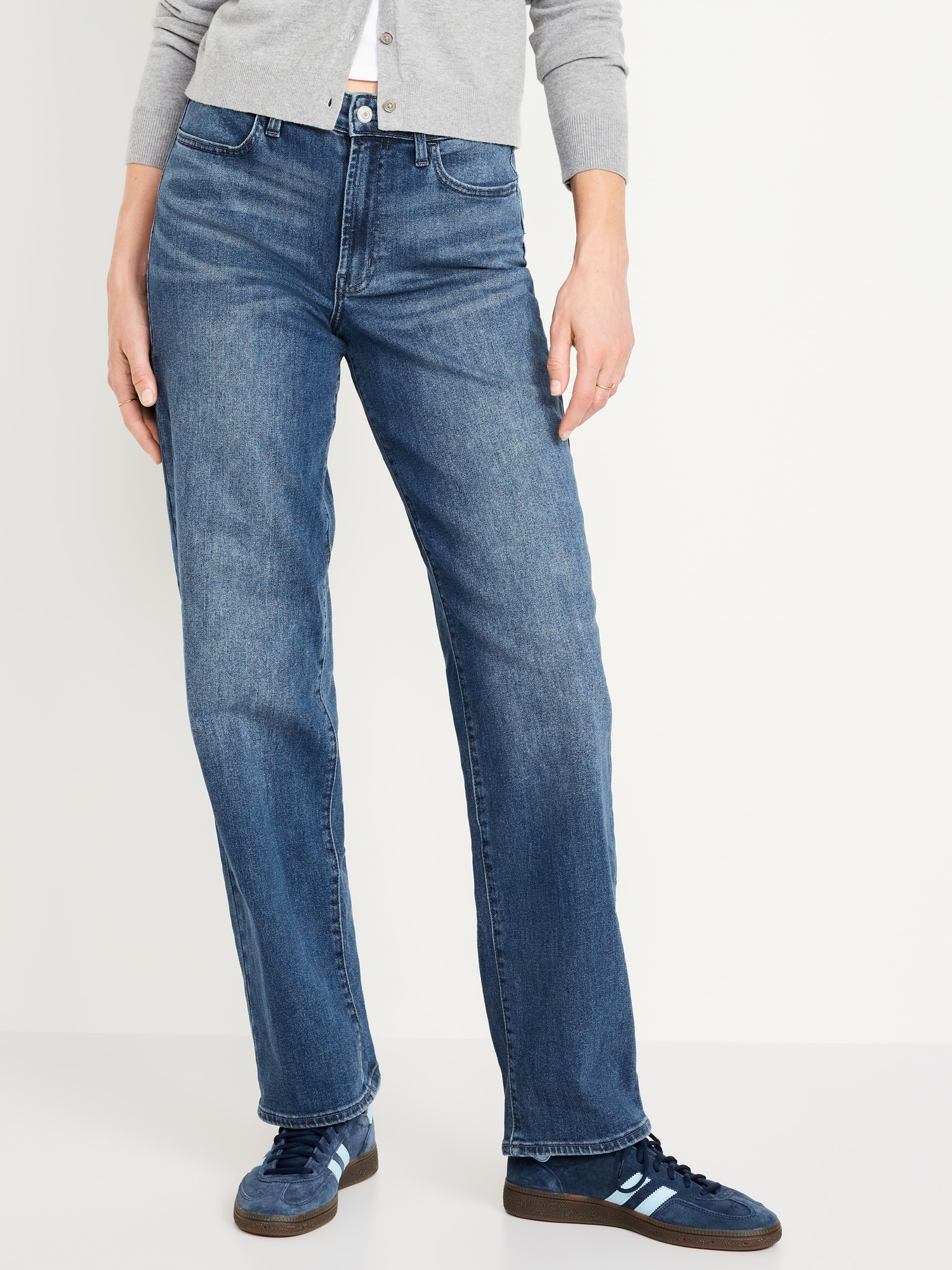 High-Waisted Wow Loose Jeans: A relaxed straight jean at a jaw-dropping price.button front, belt loops, zip fly, back patch pockets, back patch pockets, #849448