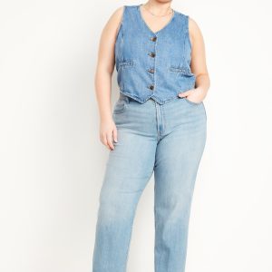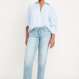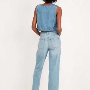 High-Waisted Wow Loose Jeans: A relaxed straight jean at a jaw-dropping price.button front, belt loops, zip fly, back patch pockets, back patch pockets, #849448