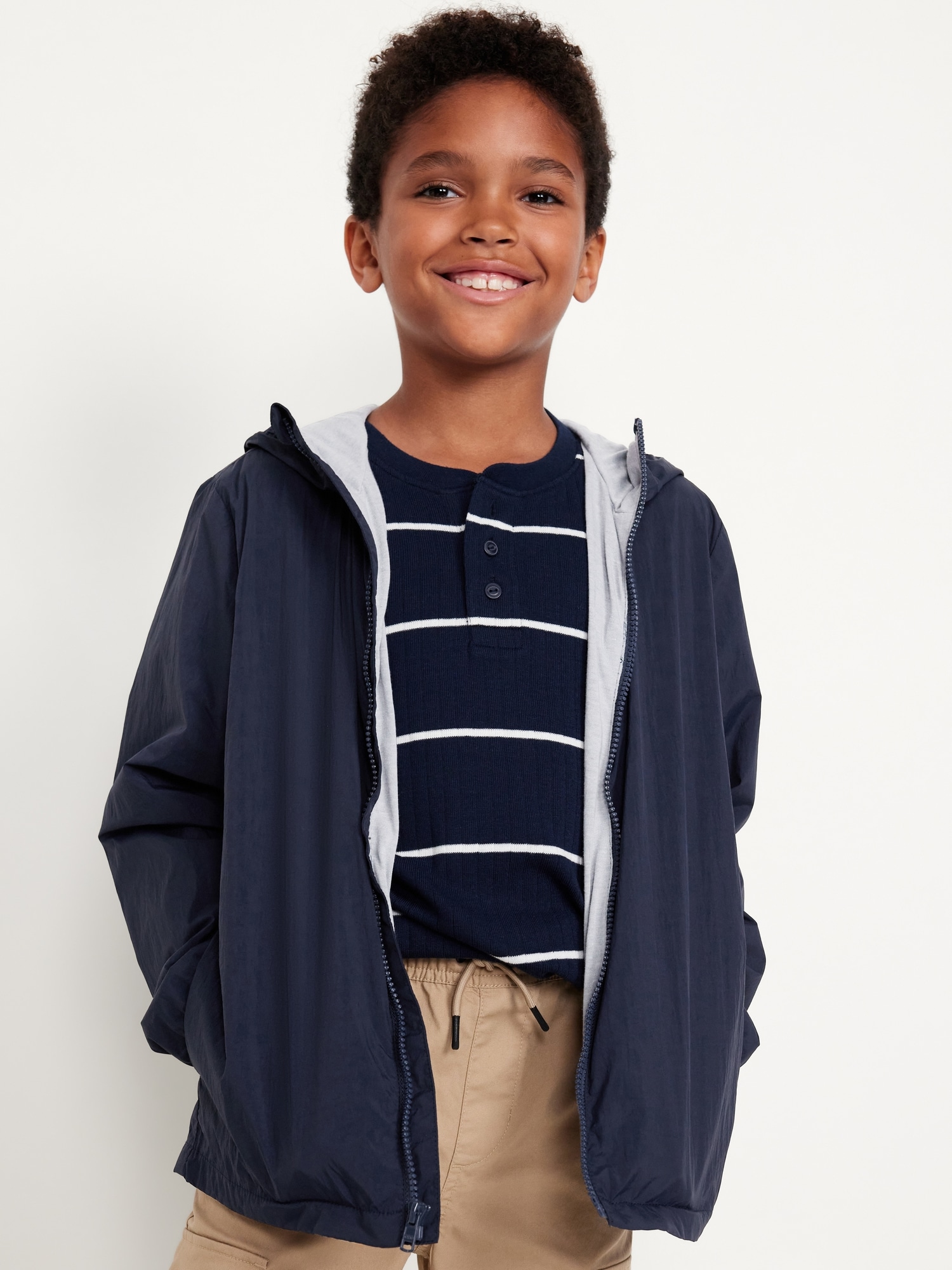 Hooded Zip-Front Water-Resistant Jacket for Boys