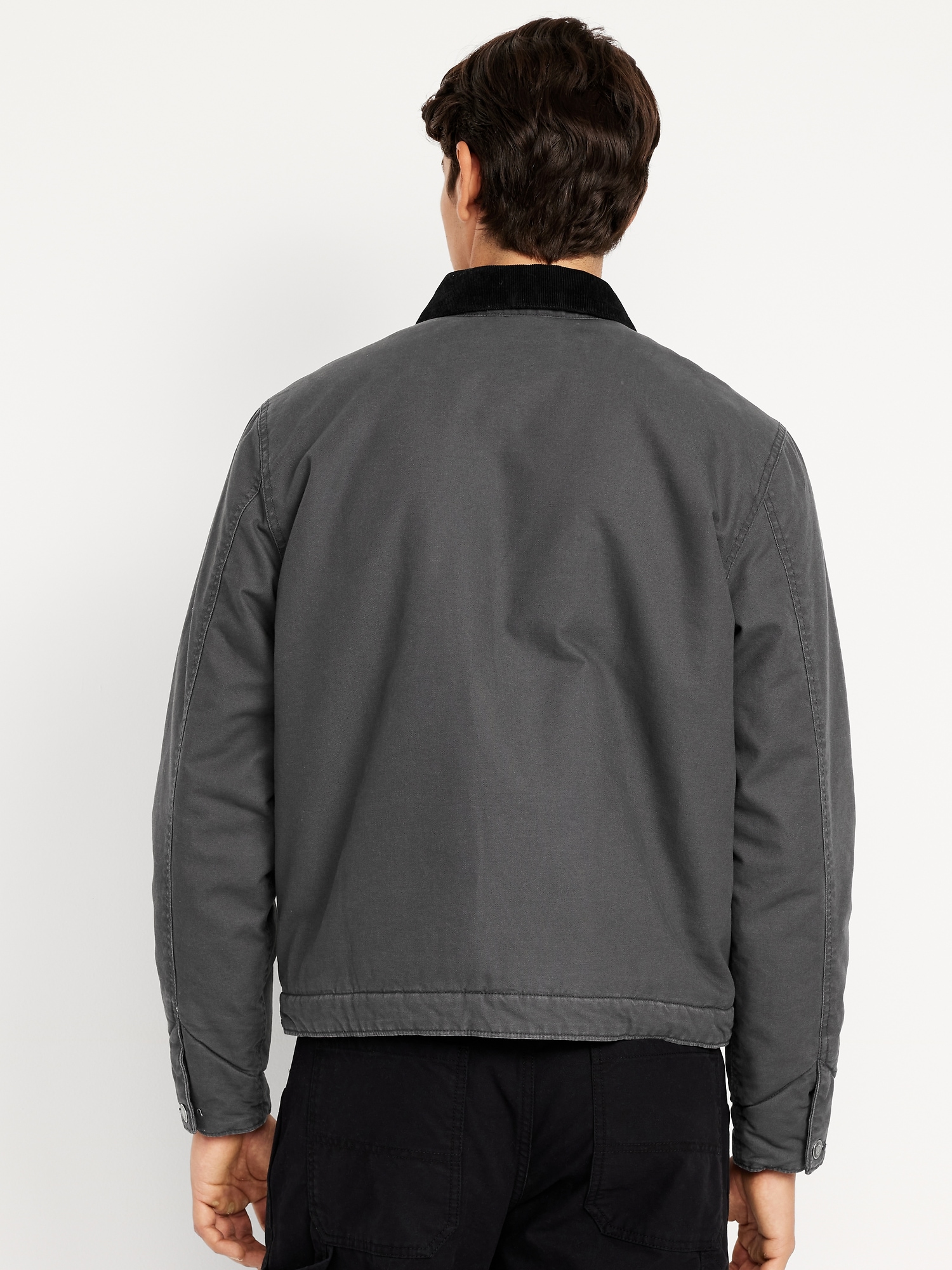 Insulated Canvas Barn Jacket: spread collar, long sleeves, full-zip front, zip-welt chest pocket, vertical welt pockets, all-over print, fully lined, #800306