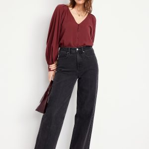 Jacquard Button-Down Top: v-neck, raglan sleeves with buttoned cuffs, full-button front, prints vary, #805742