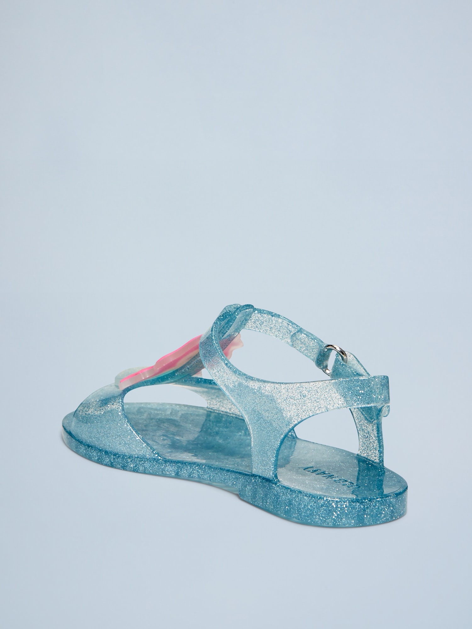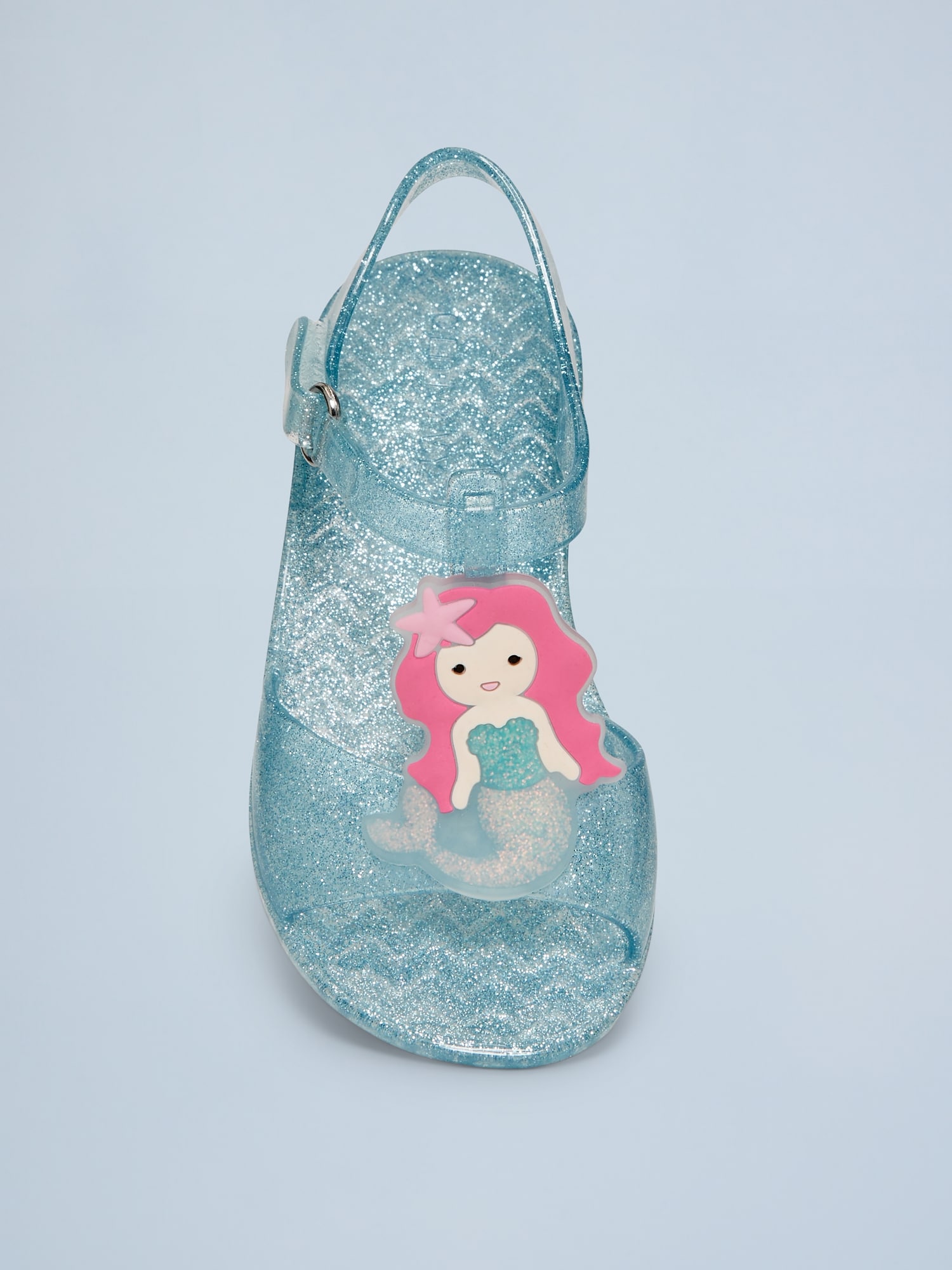 Jelly T-Strap Sandals for Toddler Girls: t-strap thong upper, firm foot bed, textured outsole, graphic across foot, glitter pattern or solid jelly, #688628