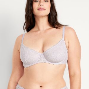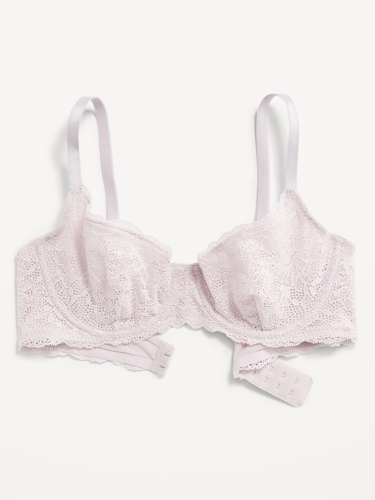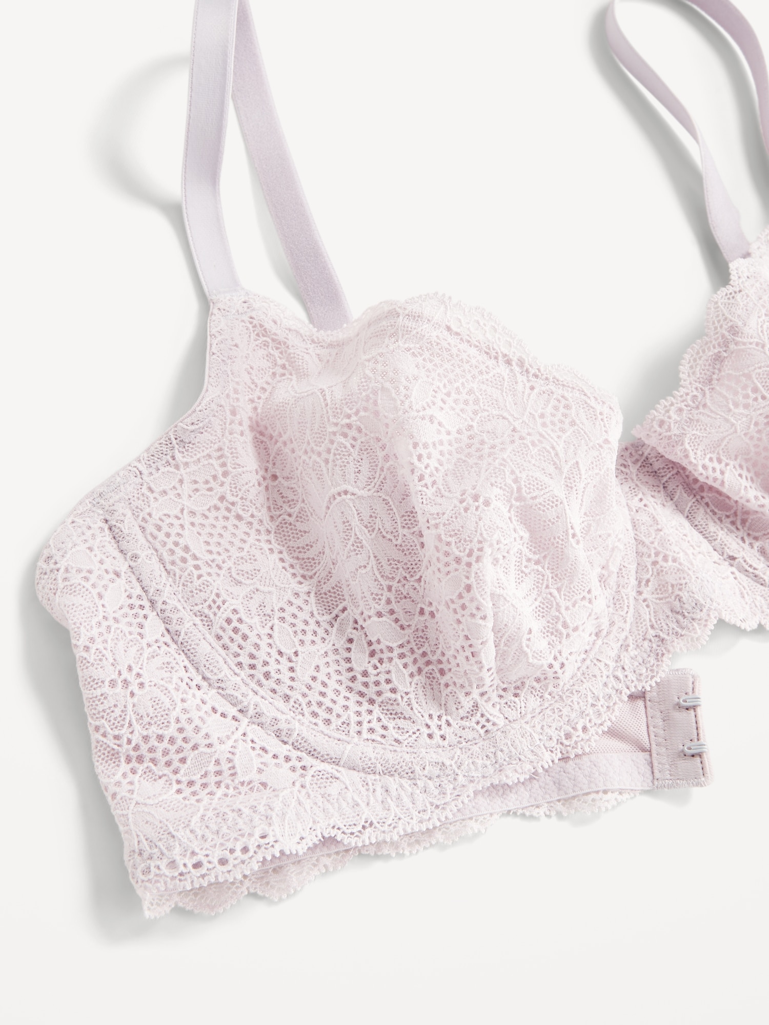 Lace Balconette Bra: adjustable elastic straps, underwire support, back hook-and-eye closure, #800564