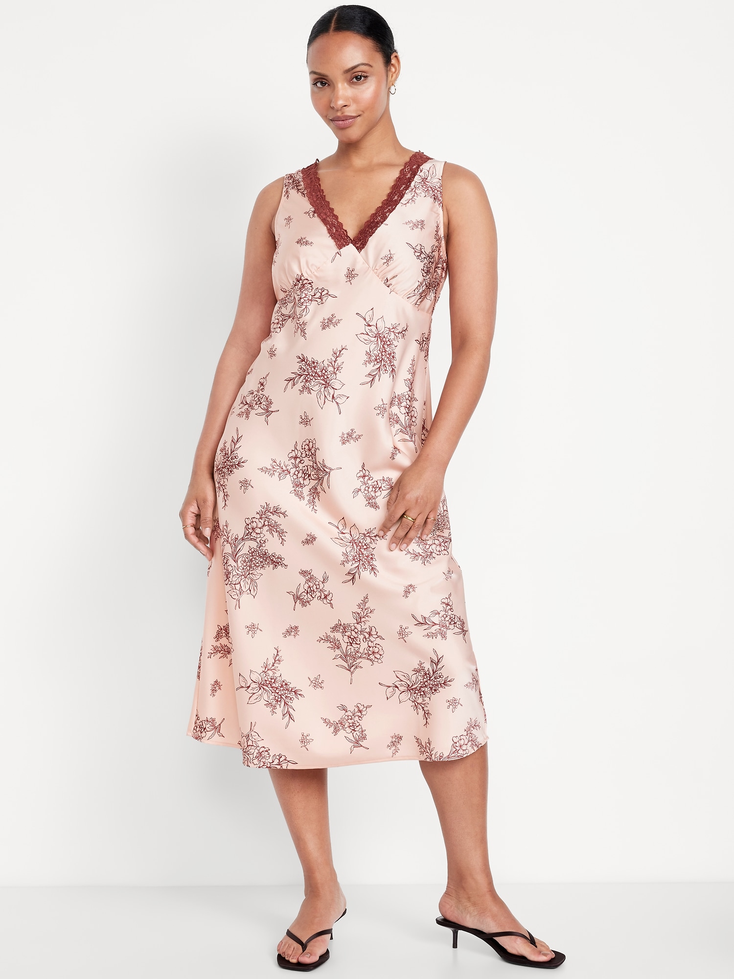 Lace-Trim Satin Midi Dress