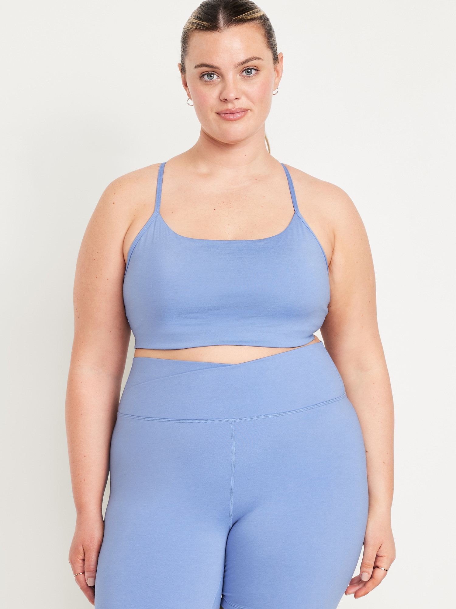 Light Support CloudComfy Sports Bra: Lightly textured and soft as a literal cloud.scoop neck, racerback, removable pads, go-dry wicks moisture, breathable, #663737
