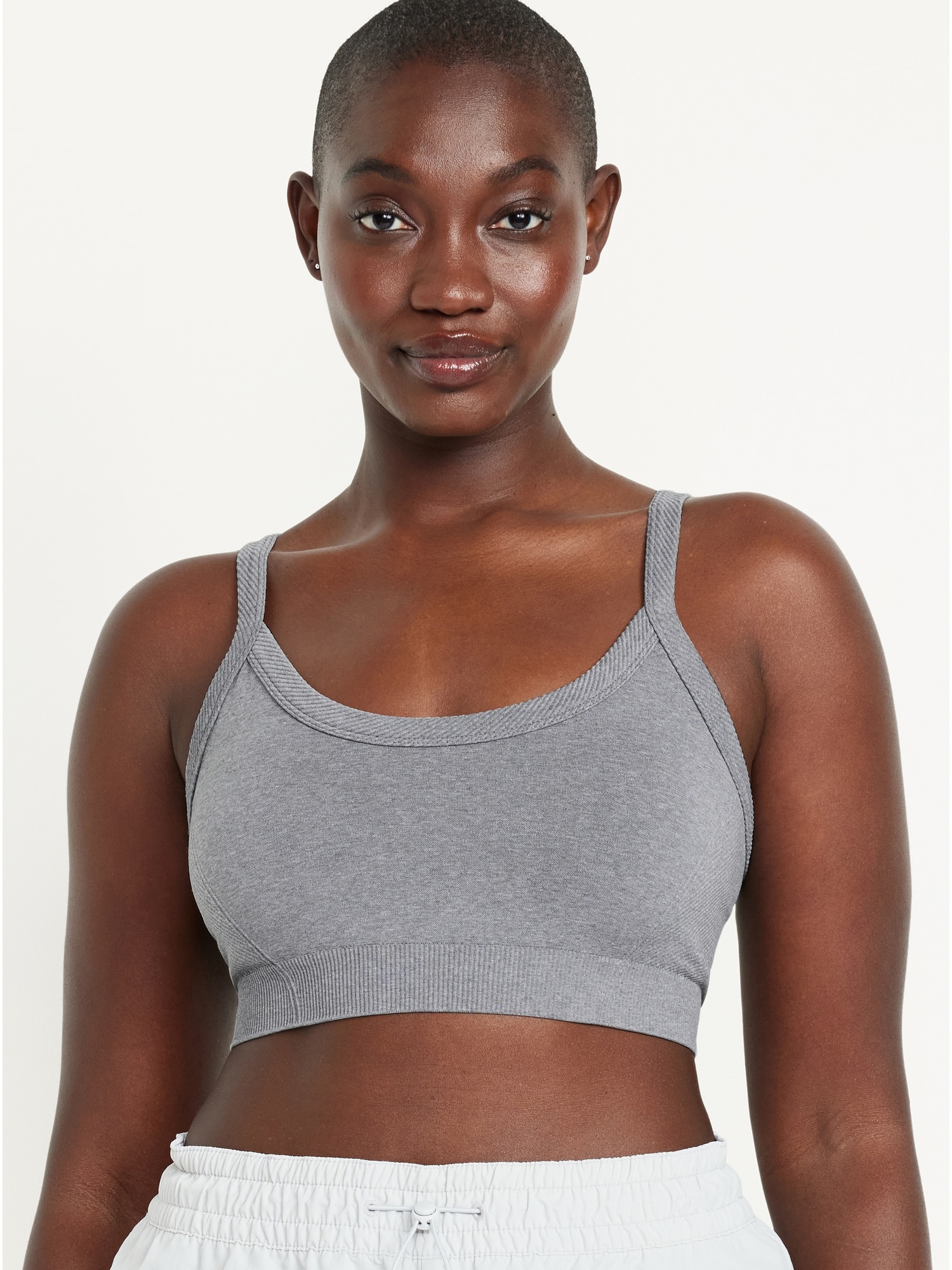 Light Support Fluid Seamless Ribbed Sports Bra: Featuring Fluid Seamless, for breathable, barely-there feels.scoop neck, adjustable straps, #845757