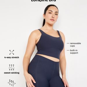 Light Support PowerSoft Longline Sports Bra: Featuring PowerSoft. Light compression meets a peachy-smooth, sweat-wicking fabric.scoop neck, wide straps, removable cups, front mesh lining, go-dry wicks moisture, #723227