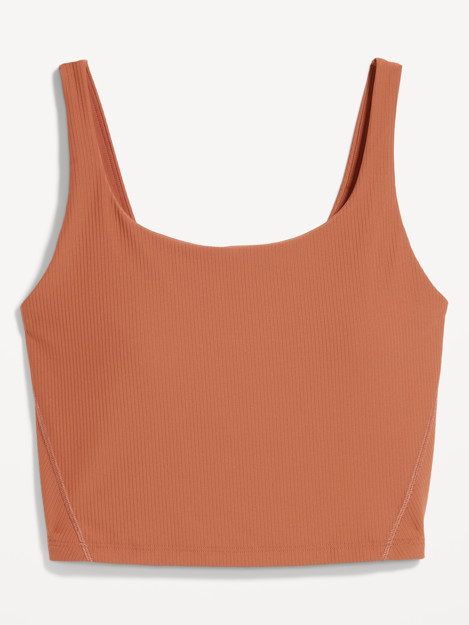 Light Support PowerSoft Rib Longline Sports Bra: Featuring PowerSoft. Light compression meets a peachy-smooth, sweat-wicking fabric.scoop neck, wide straps, removable pads, go-dry wicks moisture, #835594