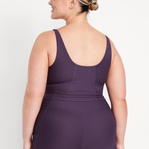 Light Support PowerSoft Rib Longline Sports Bra: Featuring PowerSoft. Light compression meets a peachy-smooth, sweat-wicking fabric.scoop neck, wide straps, removable pads, go-dry wicks moisture, #835594