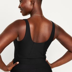 Light Support PowerSoft Rib Longline Sports Bra: Featuring PowerSoft. Light compression meets a peachy-smooth, sweat-wicking fabric.scoop neck, wide straps, removable pads, go-dry wicks moisture, #835594